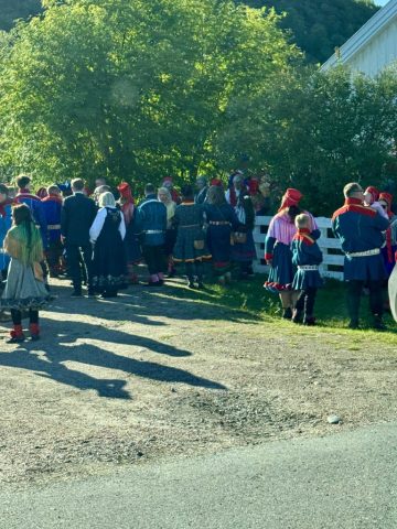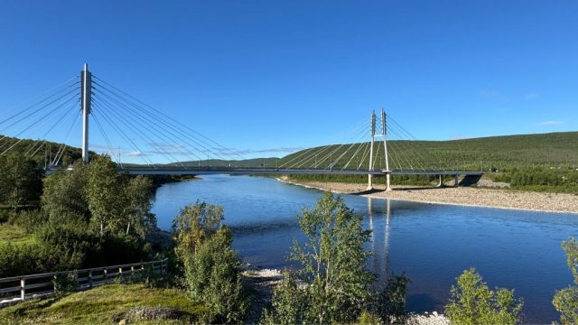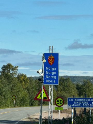 Utsjoki ist die nördlichste Gemeinde Finnlands und die einzige Gemeinde des Landes mit einer mehrheitlichen Sámi-Bevölkerung. Wir bleiben weiter auf der Finnischen Seite der Tana und fahren bis Nuorgam. Dort stehen auf einmal ganz viele Autos am Straßenrand und die Menschen sind alle traditionell samisch gekleidet. Ein schönes Bild. Kurz dahinter: „Wilkommen in Norwegen!“ und auf einmal fühlt sich alles wieder etwas vertrauter an.