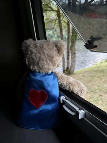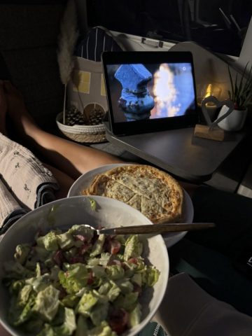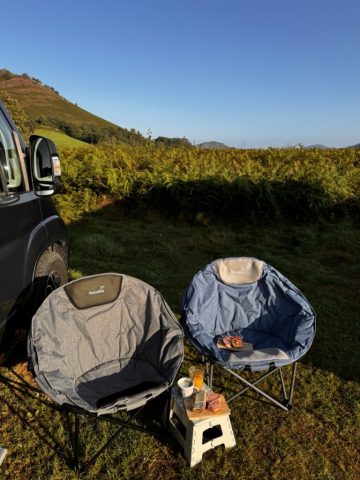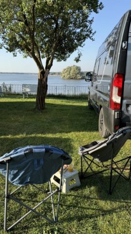 Am nächsten Morgen werden wir früh von ein paar Anglern geweckt, die ihrem Hobby nachgehen wollen. Vor uns liegen noch etliche Kilometer, also stehen wir notgedrungen früh auf und machen uns nach einem kleinen Frühstück auf den Weg: Durch kleine, verschlafene Örtchen, vorbei an Wald und Wiesen. Die Strecke zieht sich und um uns abzulenken, spielen wir „Höchstes Hoch und tiefstes Tief“ (unsere Art den Tag und die Reise zu reflektieren). Was glaubt ihr, was hat uns am besten gefallen und was überhaupt nicht? Wir nehmen viel Positives mit: Den Respekt vor all den Pilgern, die unsere Strecke zu Fuß bewältigt haben. Die verschiedensten Städte, die wir auf unserer Route kennenlernen durften oder umfahren mussten, weil nicht Camper-geeignet oder einfach total überlaufen. Die beeindruckende Landschaft, egal ob in den Bergen, in der Wüste oder am Meer. Würden wir die Reise wiederholen? Vielleicht…
