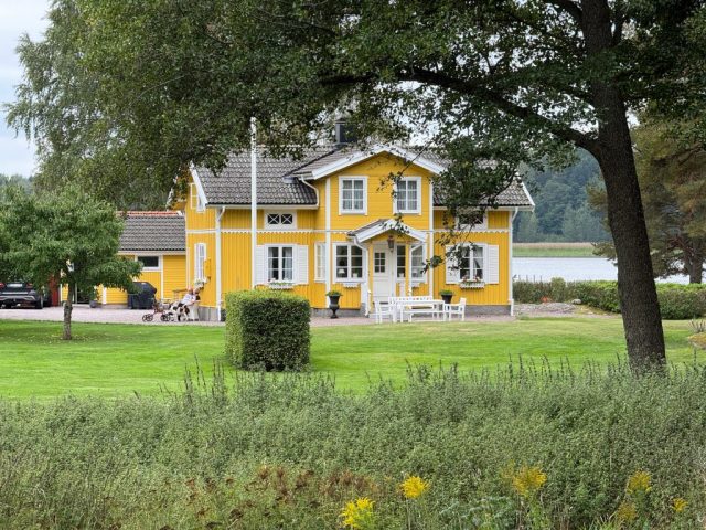 Was ist denn hier los? Südschweden scheint ab Mitte August, trotz Sonne und 18 Grad, in den Winterschlaf zu fallen. Jetzt bleibt nur noch eine Alternative: Am Stadtrand gibt es einen Coop- da ich sowieso noch einkaufen muss, kaufe ich einfach noch ein Stück Prinsesstårta für jeden, wir suchen uns einen schönen Stellplatz und wir „eröffnen“ unser eigenes, privates Café. Gesagt, getan! Er erste Teil gelingt, die Stellplatzsuche ergibt einen ruhigen Platz unter Kiefern, direkt am Vänernsee und (wieder mal) hinterm Golfplatz. Jetzt müssen wir nur noch hinkommen. Und das ist, dank der undurchsichtigen Baustellen hier, schwerer als gedacht. Wir verzetteln uns, fahren Umwege, müssen umdrehen und zurückfahren, um dann wieder zu drehen und auf die richtige Straße zu finden.