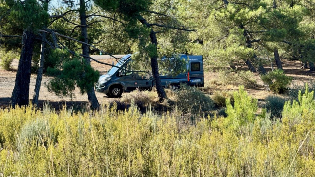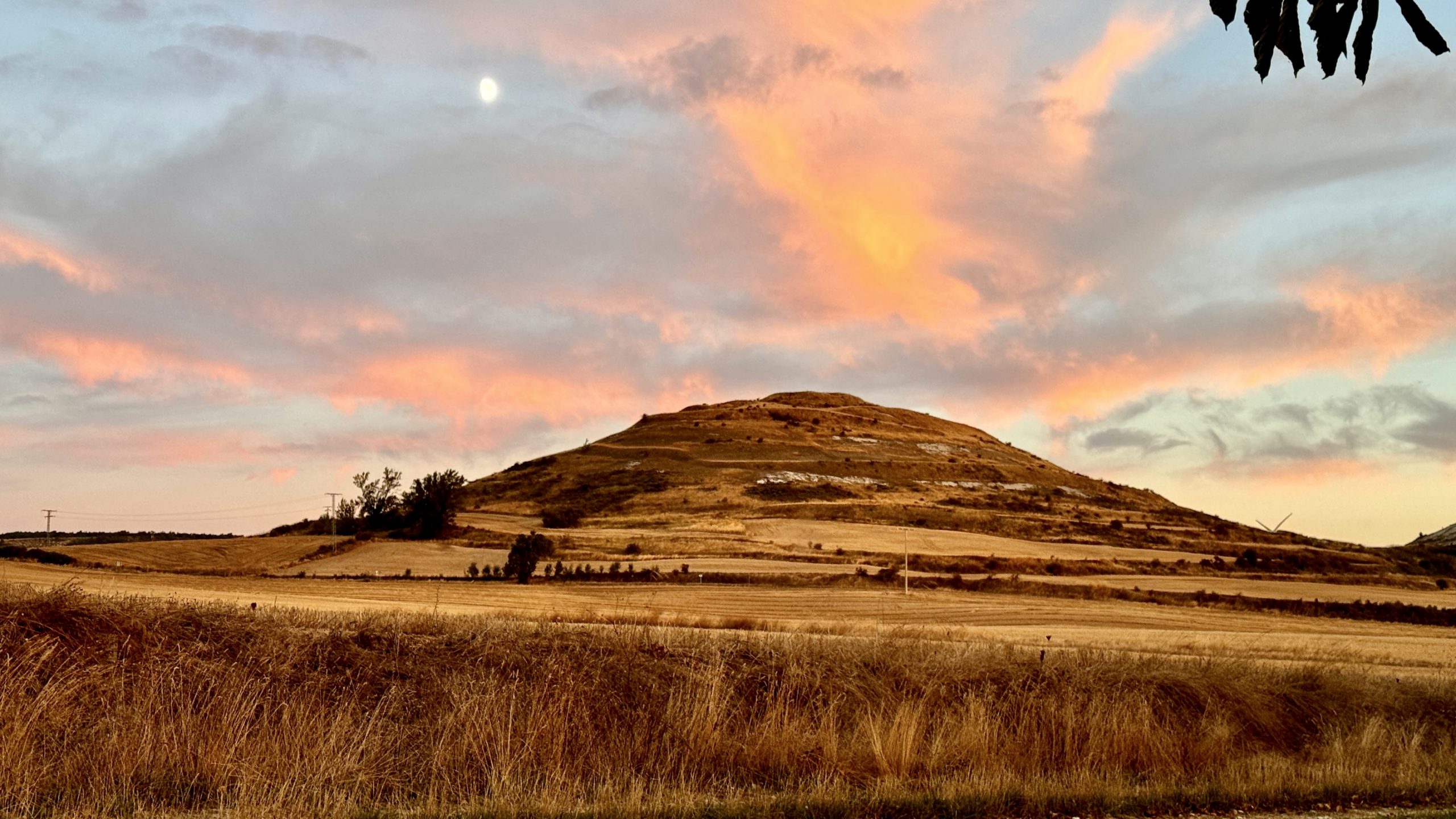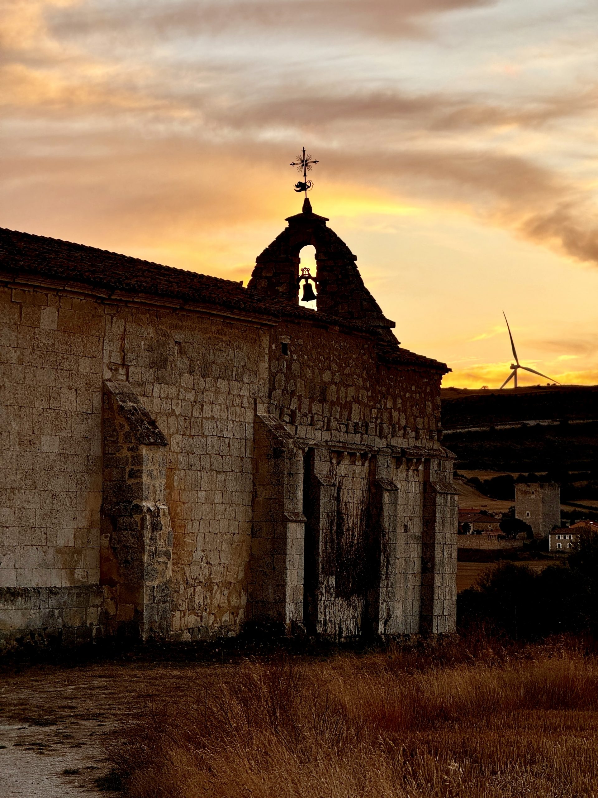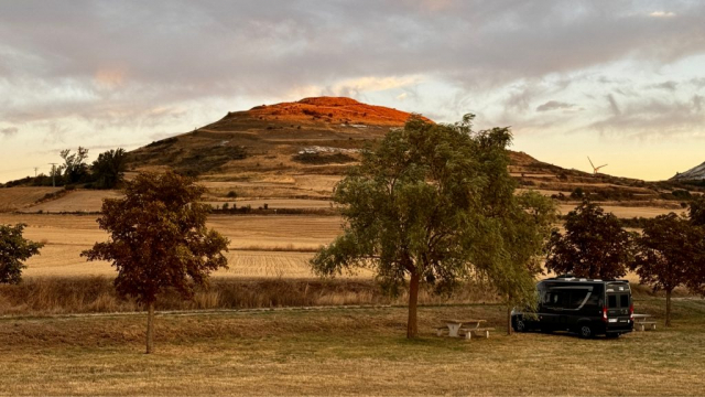 Kurz vor Burgos hat Miri einen Stellplatz ausgesucht und wir fahren ab. Durch kleine Bauerndörfer, entlang des Caminos, geht es hinauf ins hügelige Landesinnere. Neben einer alten Kirche, umgeben von Kastanienbäumen parken wir Pablo und lassen den Tag gemütlich ausklingen. Der kalte Wind pustet kräftig und der Sonnenuntergang färbt die umliegenden Hügel rosa. Ein lauschiges Plätzchen & ich hoffe, dass es heute Nacht nicht zu kalt wird. Die erhoffte Wärme im Landesinneren haben wir noch nicht gefunden, aber vielleicht müssen wir dazu einfach in die Wüste fahren!?