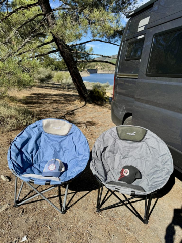Der Nachteil, wenn man einen Freisteh-Platz im Dunkeln anfährt!? Man weiß nie, was einen erwartet (Miri findet das immer etwas unheimlich). Der Vorteil: Die Überraschung am Morgen. Wir haben es gut getroffen: Weit und breit keine Menschenseele, der Stausee liegt ruhig neben uns und die Sonne strahlt vom Himmel. Heute Nacht waren es nur 5 Grad und ich heize Pablo erst mal ein, um dann die Morgenrunde hinter mich zu bringen. Zum Frühstück stelle ich endlich mal wieder unsere Campingstühle in die Sonne und warte geduldig auf meine Kaffee. So schmeckt er gleich doppelt so gut. Heute wollen wir nach León oder Burgos oder beides. Aber erstmal in der Sonne chillen, da sind wir uns einig.