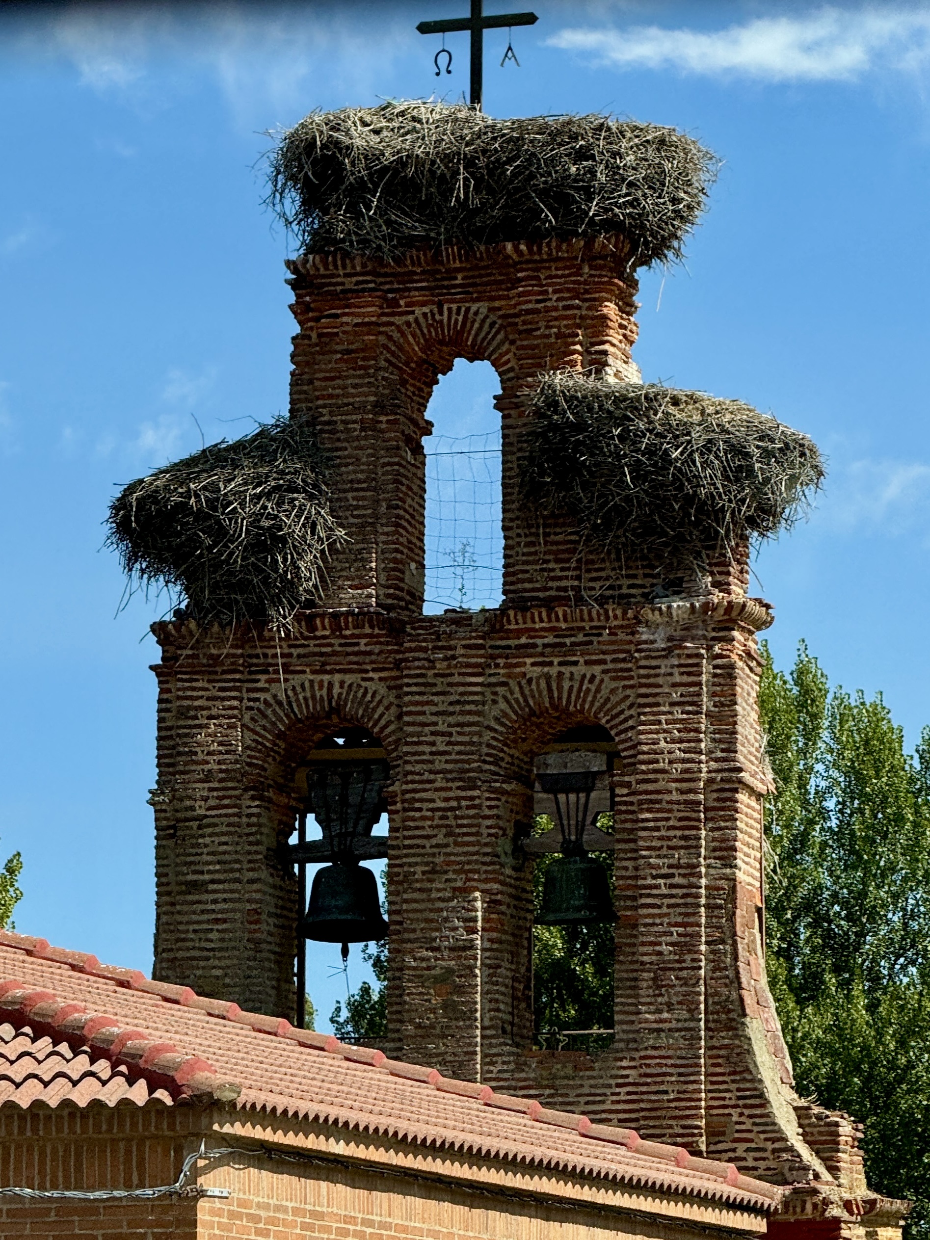 Gegen Mittag fahren wir Richtung León. Unser Navi führt uns dazu wieder querfeldein durch das Naturschutzgebiet Las Médulas. Berge aus rotem Sandstein und Edelkastanien prägen das Bild. Das Gebiet ist den Römern zu verdanken, die die natürliche Landschaft veränderten, als sie dort, ab dem 1. Jh. n. Chr. Gold fanden und abbauten. Wir kommen an mittelalterlich anmutenden Dörfern vorbei, hier scheint die Landwirtschaft Haupteunnahmequell zu sein. Auf den Kirchtürmen warten riesige Nester auf die Rückkehr der Störche und am Wegesrand begegnen uns immer wieder tapfer wandernde Pilger.
