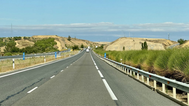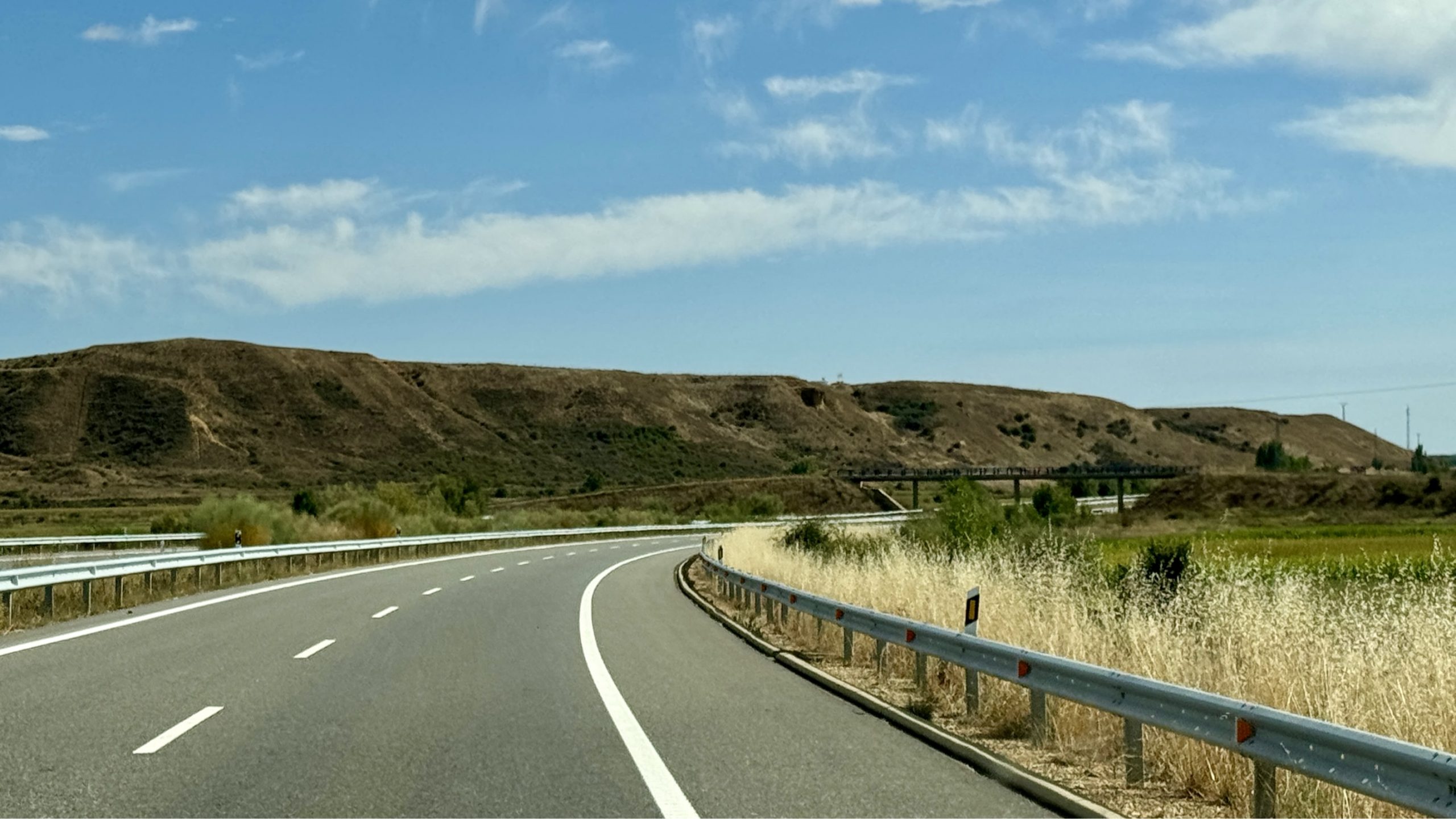 Die Stadt hat wirklich schöne Ecken. Alles in allem, sehr sehenswert und man könnte noch eine Weile hier bleiben. Ein paar Tapas essen und die Spanier beim Feiern beobachten. Da wir aber noch weiter nach Burgos wollen, machen wir uns langsam auf den Weg. Die Autobahn ist leer und die Fahrt führt durch unterschiedliche Landstriche: Von felsig über bewaldet, vorbei an trockenen Stoppelfeldern, verblühten Sonnenblumenfeldern und rot schimmernden Sandstein-Hügeln. Eine trockene und dürr wirkende Gegend, aber irgendwie besonders. Man könnte meinen, dass man im Süden Spaniens ist. Die Sonne sticht und es fehlen nur noch die trockenen Strohballen, die über die Straße geweht werden.