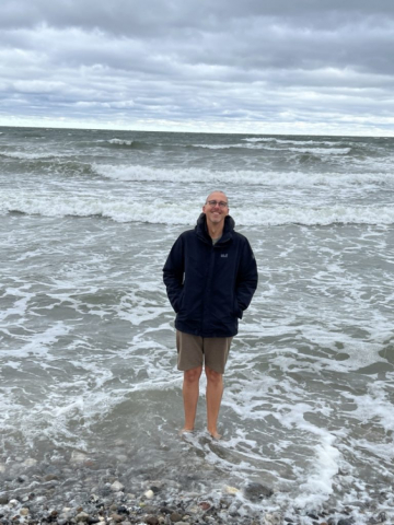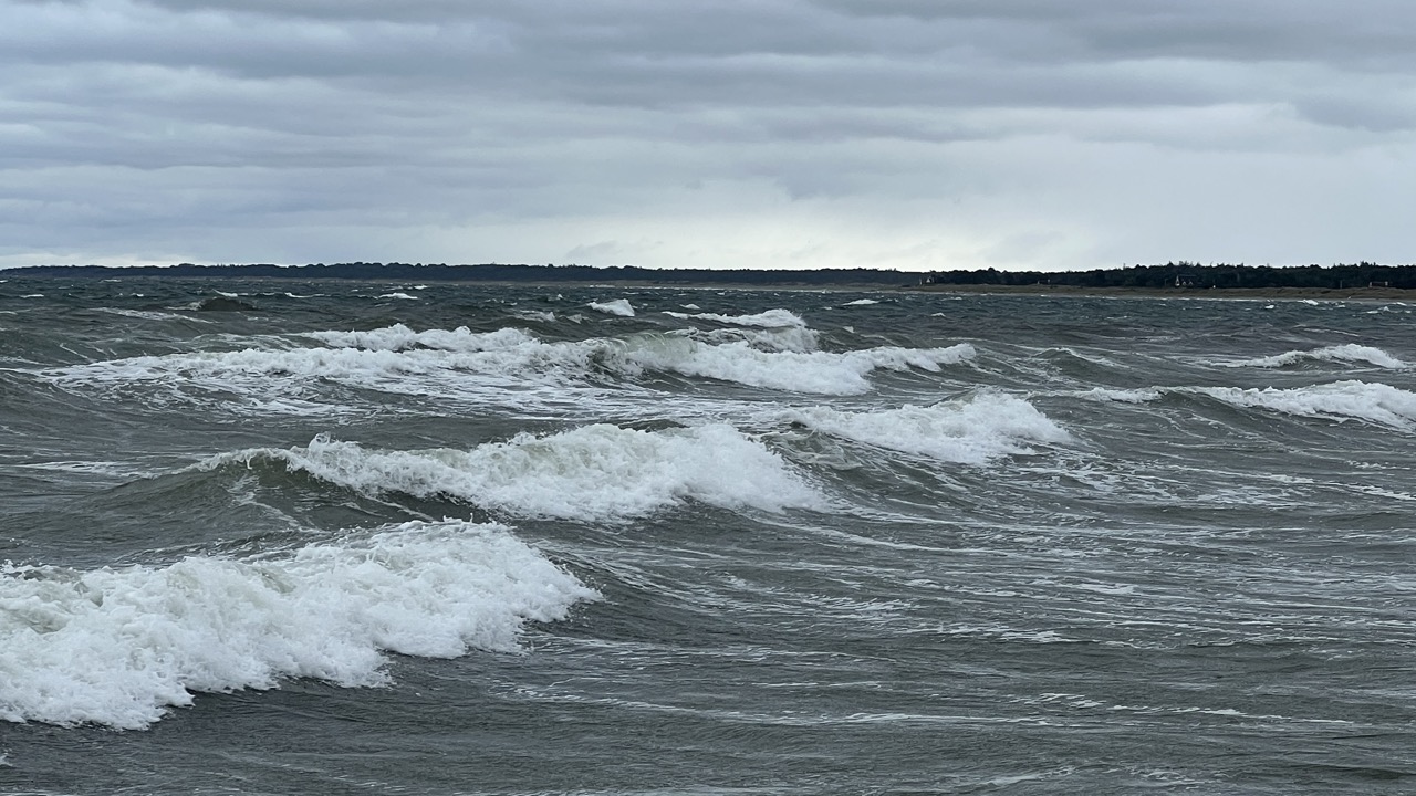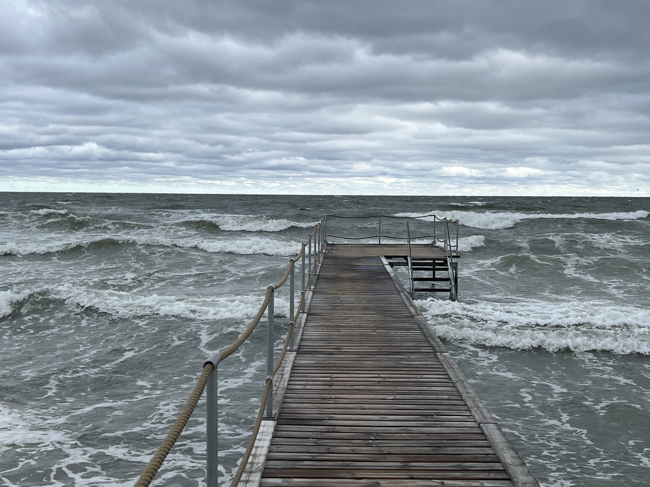 Man, war das eine Nacht- wir wurden kräftig durchgeschüttelt und vor 1:00 Uhr war an Schlafen nicht zu denken. Wir schlafen erstmal aus und frühstücken gemütlich. Danach laufen wir zum Strand um die tosenden Wellen zu beobachten. Ob das Wasser so kalt ist, wie es aussieht? Marco testet und stellt überrascht fest: „Wärmer als gedacht! Da könnt man glatt eine Runde schwimmen, wenn es nicht so stürmisch wäre“