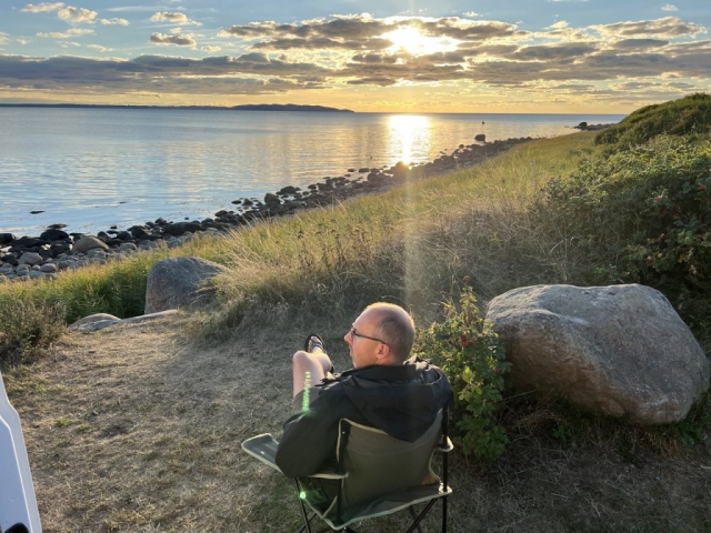 Also zieht es uns an einen Stellplatz direkt am Meer und wir genießen bei einem traumhaften Sonnenuntergang und dänisch inspiriertem Abendessen die Aussicht bevor wir hundemüde in unser Nest fallen.