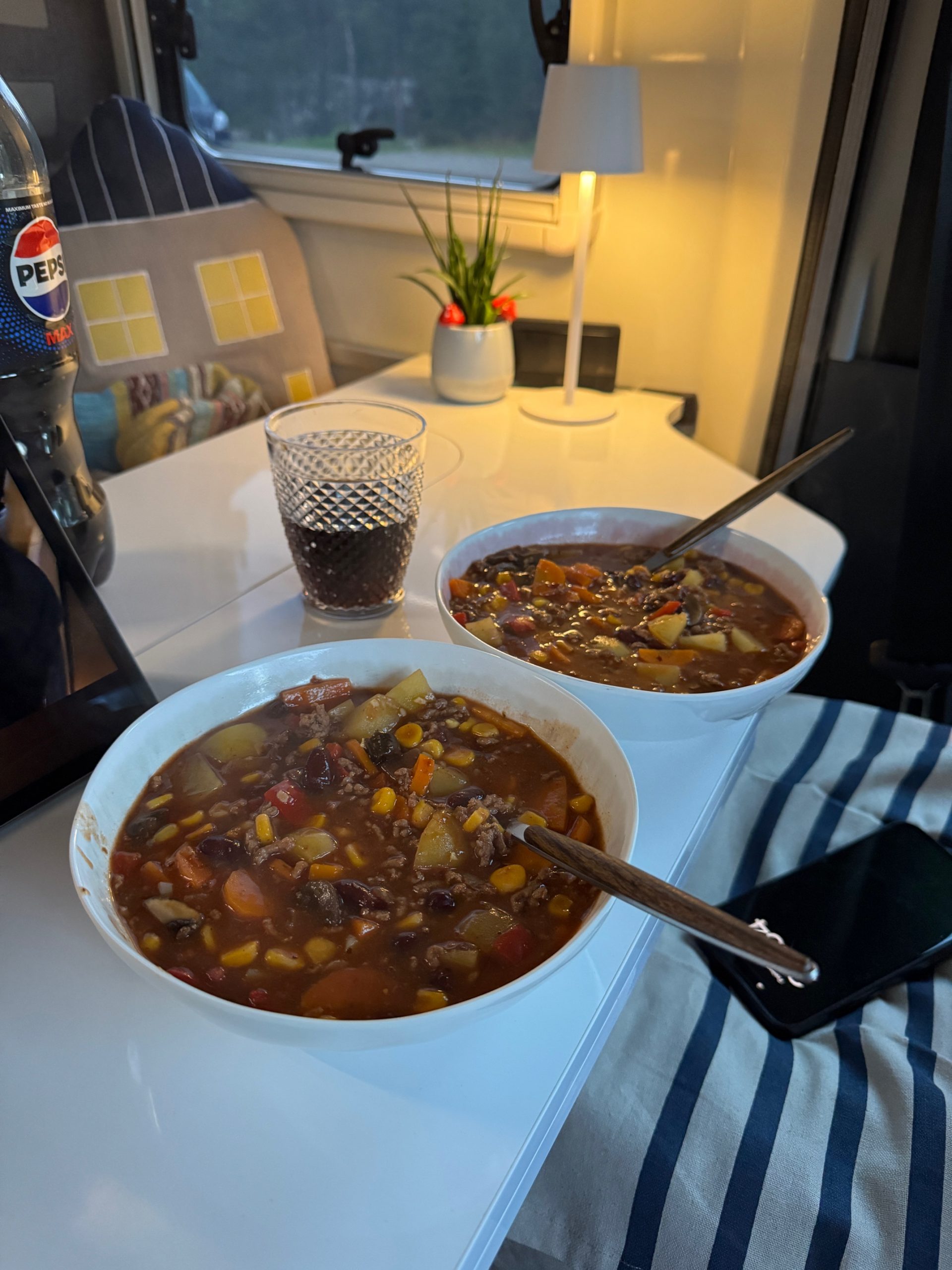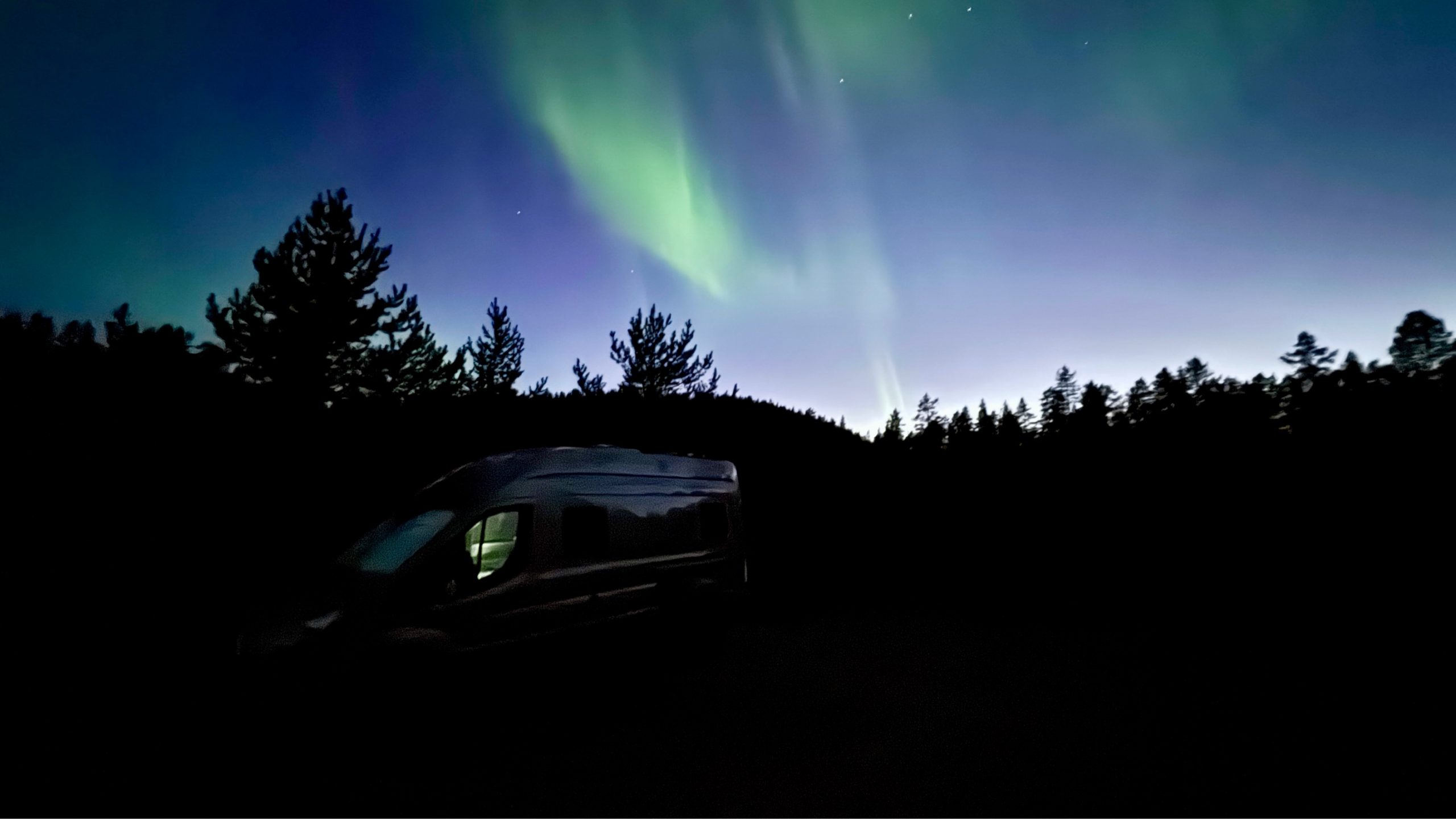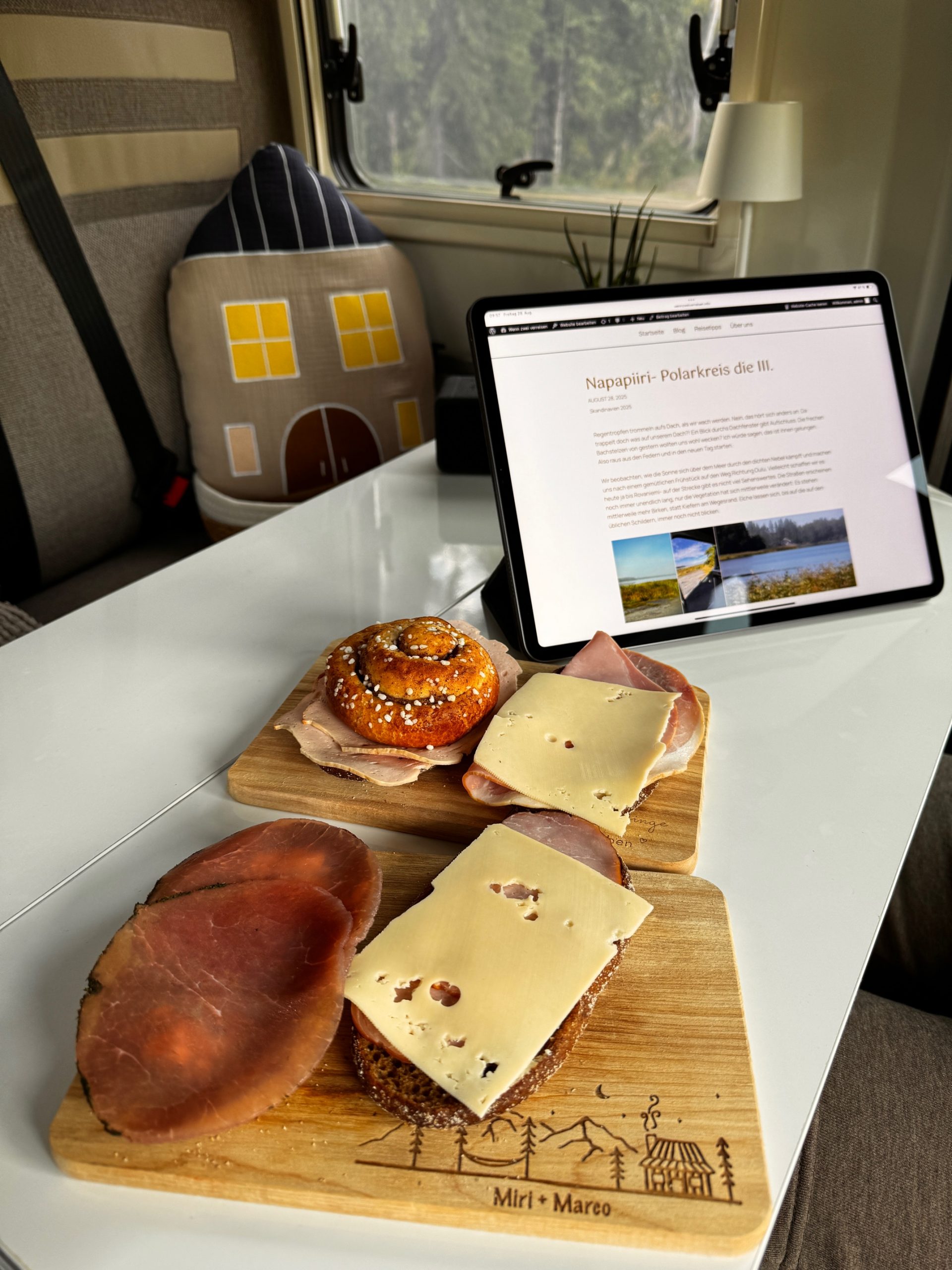 Wir hatten eine ruhige Nacht. Bis auf ein komisches Elch-Muuuuuh bevor wir schlafen gingen, gab es keine Vorkommnisse. Heute lassen wir es erst einmal langsam angehen. Bis der Blog fertig ist, das Frühstück serviert und Ragnar wieder auf Vordermann gebracht wurde, ist es 11:00 Uhr. Achja, heute ist auch noch Haar-Waschtag: draußen, bei den Mücken, in der Kälte – Vanlife ist eben Abenteuer!