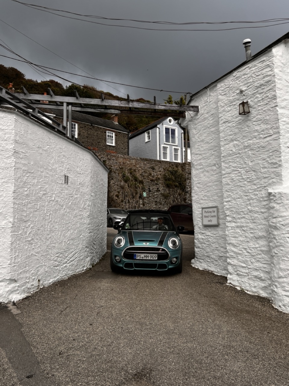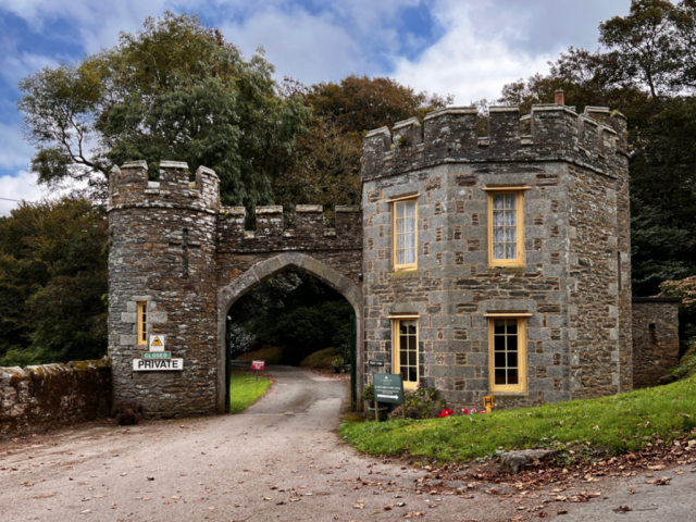 Als es anfängt zu regnen, machen wir uns auf den Weg zum nächsten Schmuggler-Hafen: Portloe, mal wieder einer der schönsten Orte in Cornwall. Vorher müssen wir allerdings durch die üblichen Hecken, bergauf und -ab fahren und kommen noch am imposanten Herrenhaus „Caerhays Estate“ vorbei. Irgendwie kommt uns das Anwesen bekannt vor & wie sollte es anders sein: Es war schon mehrfach Drehort in Rosamunde Pilcher-Filmen.