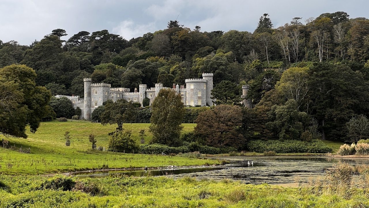 Die Gärten hier müssen im Frühjahr wunderschön sein, denn sie beheimaten zahlreiche Kamelien, riesige Rhododendren und Magnolien. Leider ist der Zugang aktuell untersagt, denn die Besitzer öffnen Gärten und Castle nur zu festgelegten Zeiten im Frühjahr.
