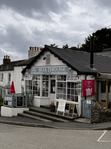 Wir fahren in Richtung Portscatho, dem letzen Punkt unserer Tour. In der „Hidden Hut“ am Strand wollen wir uns einen Kaffee gönnen. Allerdings haben wir nicht mit den englischen Öffnungs-/ Kaffee-/ Teezeiten gerechnet. Denn das Café schließt schon um 15:00 Uhr. Wir fragen uns mittlerweile ernsthaft, ob der five’o clock – Tea ein englisches Märchen ist?! Vielleicht wird dieser aber auch nur zu Hause eingenommen, weshalb alle Cafés schon so früh schließen? Wir müssen uns also eine Alternative suchen und fahren in den Ort. Dort finden wir auf der kleinen Terrasse des „Boathouse“ ein schattiges Plätzchen und tauchen ein, in die Geschichte des Ortes.