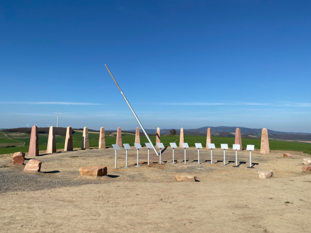 12 massive Buntsandstein-Stehlen aus der Region, bilden die begehbare Sonnenuhr auf dem Reiserberg in der Verbandsgemeinde Otterbach-Otterberg. Die Anlage, die sich momentan noch im Aufbau befindet, ist Bestandteil des Planetenwegs, der viele interessante Fakten zu unserem Sonnensystem liefert.