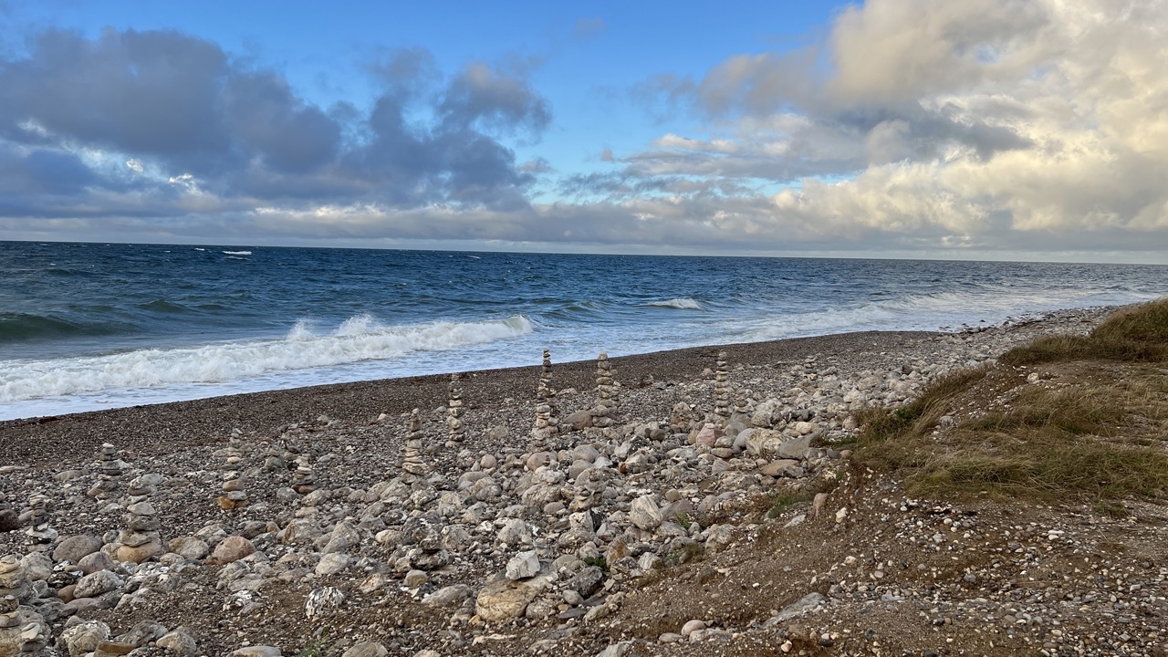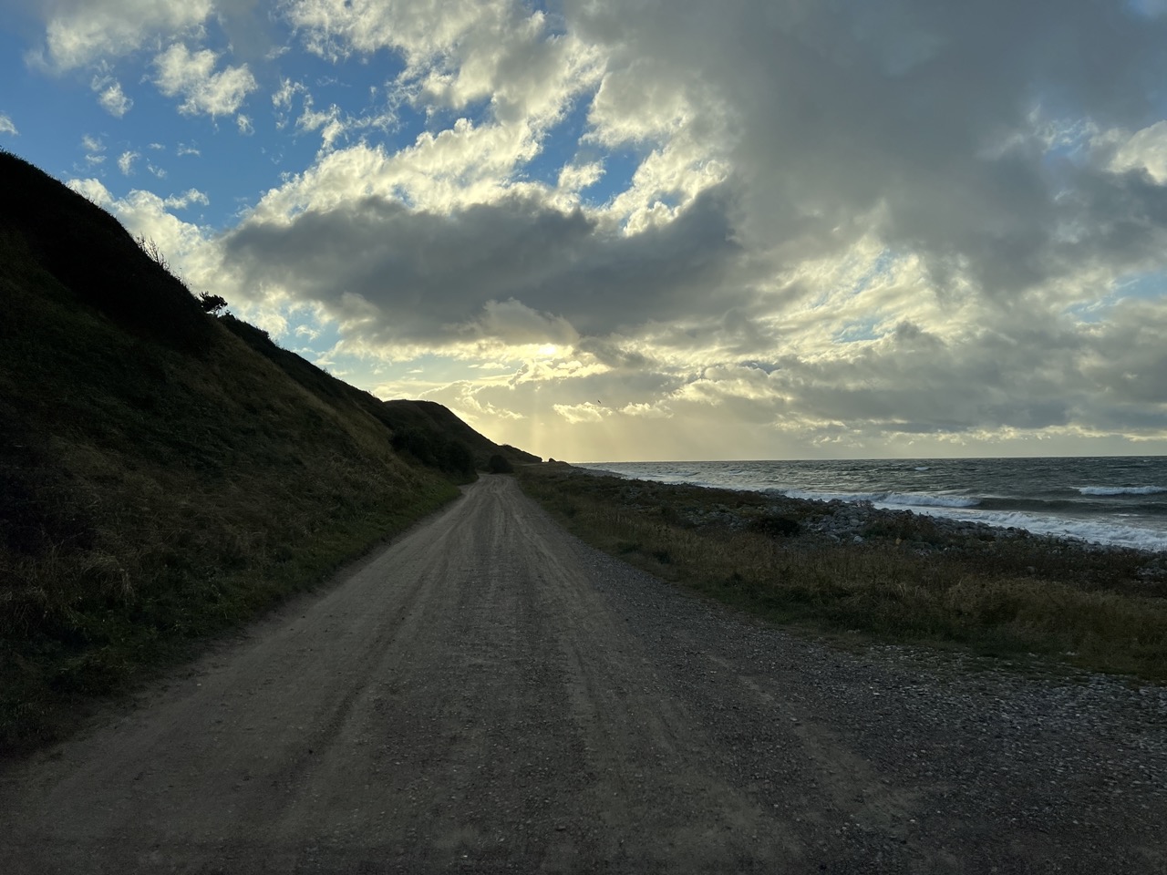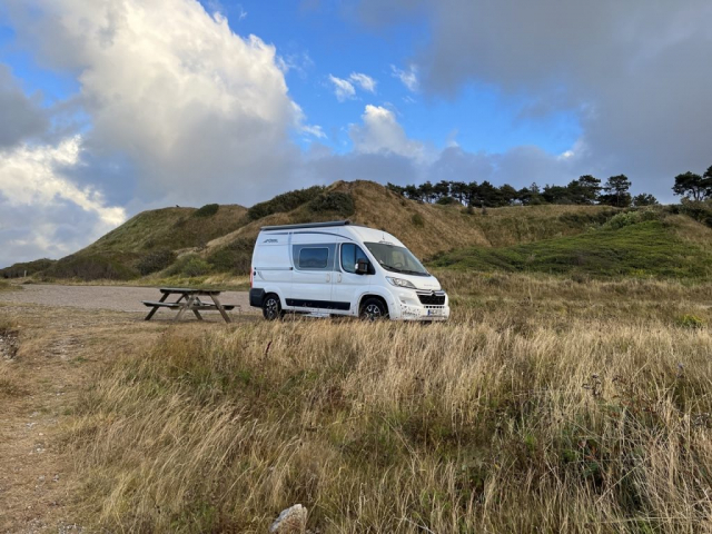 Der Stellplatz ganz im Norden von Seeland und ist von der wilden Hesselø Bugt umspült. Rau, steinig und mit tosenden Wellen begrüßt er uns. Die Sonne zeigt sich, gefolgt von Wolken- dunklen, sehr dunklen Wolken. Uns wird so nah am Meer doch etwas mulmig und wir entscheiden uns einen etwas geschützteren Platz zu suchen.