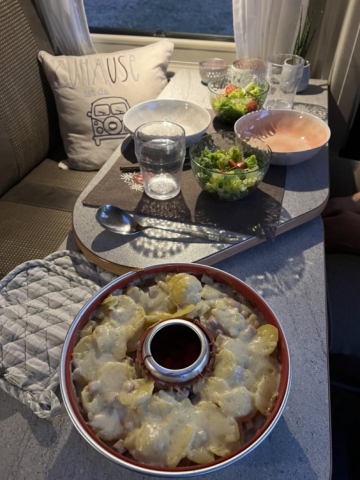 Unser Bauchgefühl hat uns nicht getäuscht, denn es zieht ein Sturmtief mit Gewitter und Starkregen über uns. Pössi wir richtig durchgeschüttelt und für uns ist so ein fast hautnahes Unwetter ein ganz neues Erlebnis. Das wird eine unruhige Nacht!