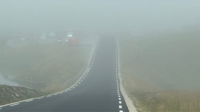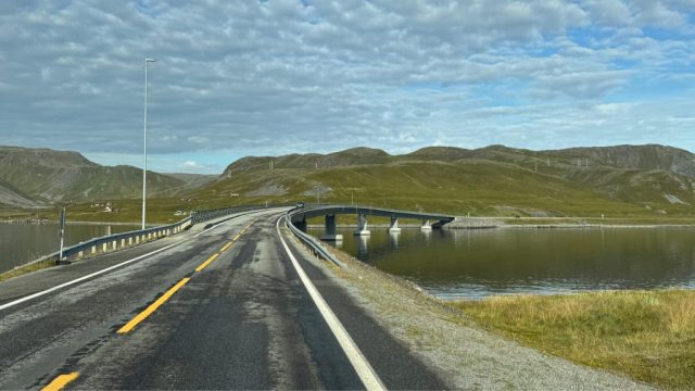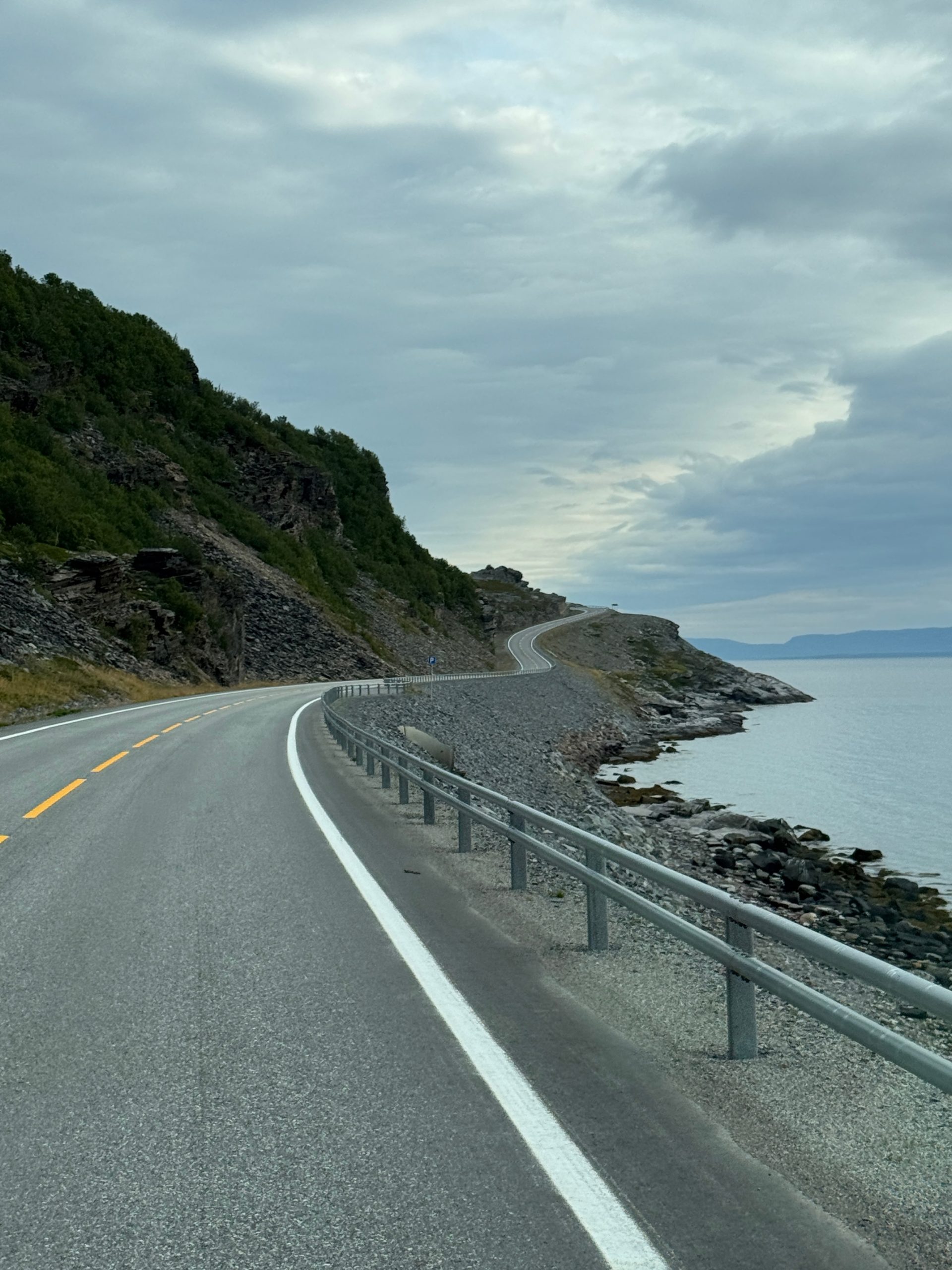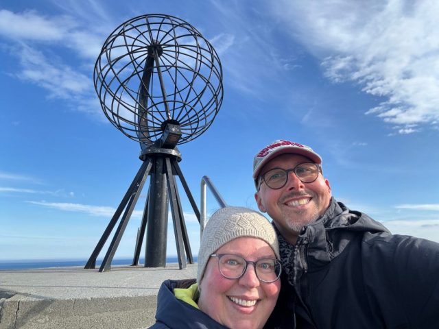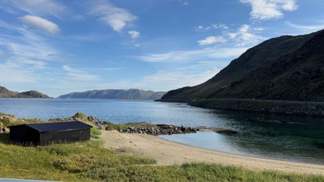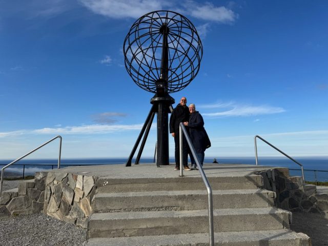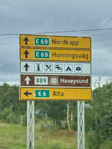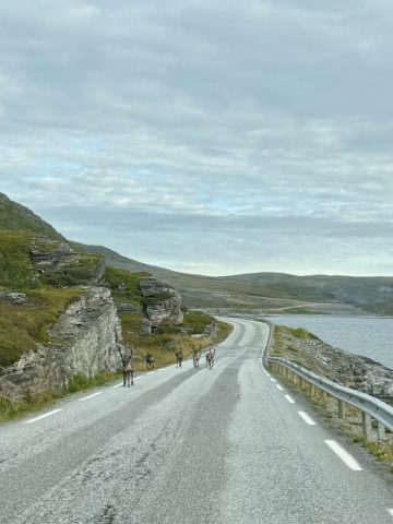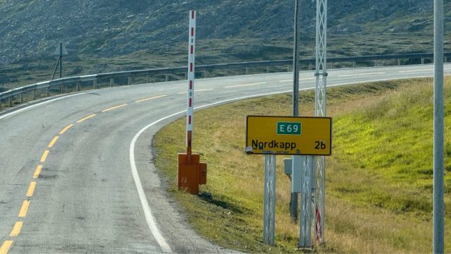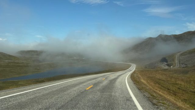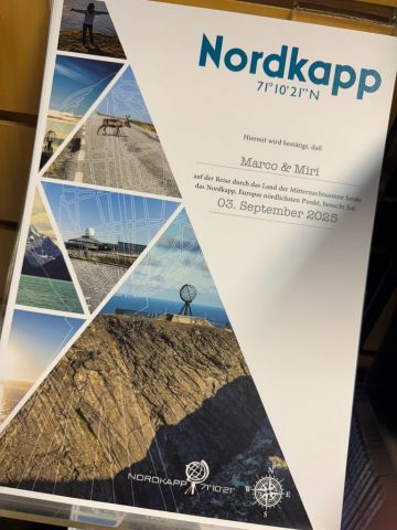 Nach einem kurzen Einkauf geht es weiter. Nur noch wenige Kilometer trennen uns von unserem (Zwischen)-Ziel. Vor vier Jahren haben wir schon mal einen Versuch gestartet, bei Tromsø jedoch abgedreht. Auch hier geht es vorbei an Fjorden mit roten Häuschen, hohen Felsen und ganz vielen Rentieren. Wir passieren die Convoy-Sammelstelle für den Winter und kämpfen uns neben Motorrädern, Radfahrern und Wanderern, bergauf zum Hochplateau des Nordkaps. Allerdings zieht gerade dichter Nebel über die Straße. „Wird wohl doch nichts mit Sonne am Kap!?“ Aber die Sonne setzt sich durch und auch der Nebel kann unserer gute Laune nichts anhaben. Wie es wohl im Winter hier ist? Die Straßen weiß, glatt und die Fahrt nur im geleiteten Convoy erlaubt. Das ist bestimmt ein noch größeres Abenteuer, aber uns reicht gerade unser kleines!