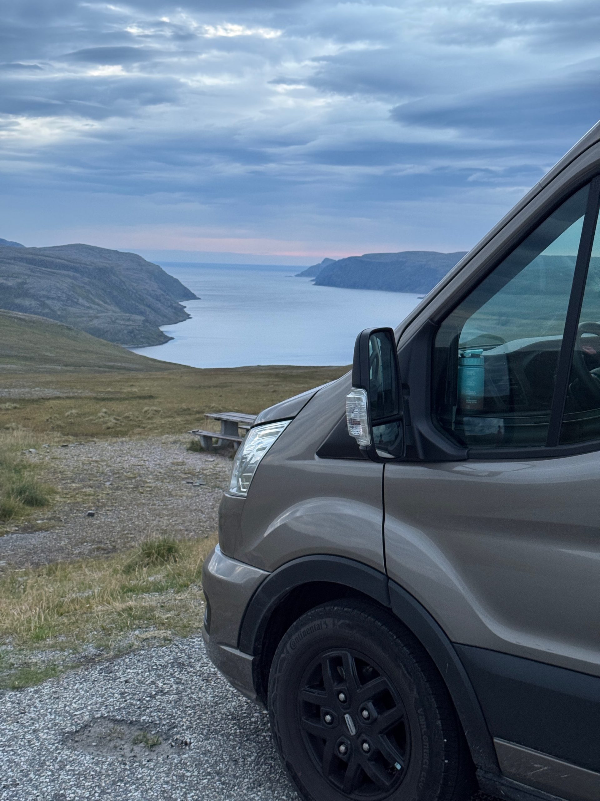 Wir haben unsere 5 Stunden Parkzeit fast aufgebraucht und machen uns auf den Weg zurück Richtung Honningsvåg. Es geht erneut durch die wunderschöne Landschaft, mit Rentieren und Seeadler am Wegesrand. Unser Wildtiersichtungs-Zähler explodiert übrigens in der Kategorie Rentiere. An einem Parkplatz auf einem Plateau mit Ausblick auf den Tufjorden finden wir unseren Übernachtungsplatz. Umgeben von Rentieren lassen wir den erlebnisreichen Tag hier ausklingen und uns vom Wind in den Schlaf schuckeln.