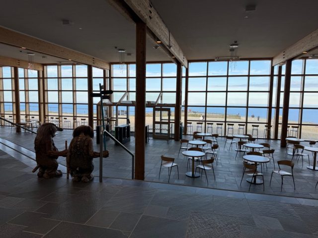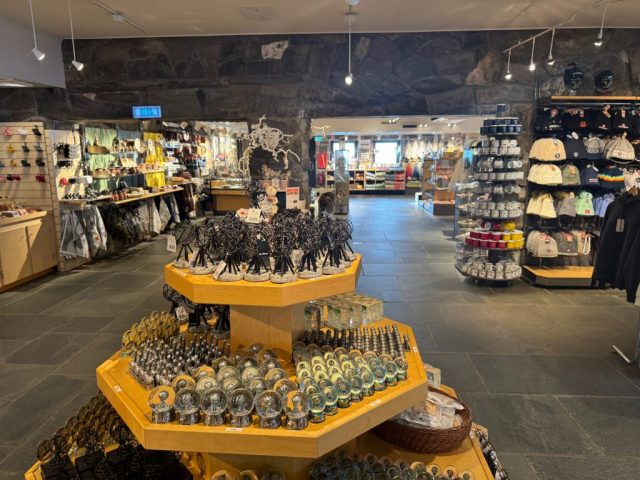 Achja, die Nordkapphallen: Sie sind ganzjährig geöffnet, weit bis in die Nacht hinein und hier erfährt man, in teils kuriosen Ausstellungen, etwas mehr über die Geschichte des Nordkapps. Man sieht den Wandel des Kapps über verschiedene Jahreszeiten in einem ca. 15 minütigen Dokumentarfilm, kann die Johanniskapelle besuchen oder durch einen kleinen Tunnel hinab zum „Kings-View“ steigen. In den Hallen befinden sich auch Café, Postkasten und Souvenierladen. Allerdings hat der Eintritt, den man bezahlen muss, einen bitteren Beigeschmack: 350 NOK pro Person, selbst wenn man nur eine Postkarte kaufen und abschicken oder eine Kaffee trinken möchte. Ja, richtig gelesen, um Geld ausgeben zu können, muss man am Nordkapp Geld ausgeben. Ob wir diesem Absurdum gefolgt sind… seht selbst!