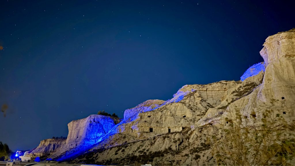 Wir finden zum Glück eine in Carcastillo und gönnen Pablo etwas Wellness nach all den Strapazen. Danach geht es schnurstracks und auf asphaltierten Wegen zurück nach Arguedas, um den Stellplatz unterhalb der Cuevas auszuprobieren. Auch hier stehen wir zwischen viel Weißware, aber mit Ausblick auf die, von der Sonne in sanftes rot gefärbten, Höhlenwohnungen. Bis in die 60er Jahre wurden diese noch bewohnt. Einige sind noch sehr gut erhalten und es macht Spaß sie zu erkunden. In der Regel bestehen die Wohnungen aus 2-3 Zimmern und einer Kochtstelle (Küche). Es gab kein fließend Wasser und kein Strom. Dennoch fühlten sich die Bewohner hier wohl, denn das Dach überm Kopf war erschwinglich. Da der Stein leicht zu bearbeiten war, reichten Hammer und Meißel um den Wohnraum zu erweitern. Allerdings sind ein paar der Höhlen mittlerweile auch eingestürzt, weshalb man sich wirklich nur in markierten Bereichen aufhalten sollte.