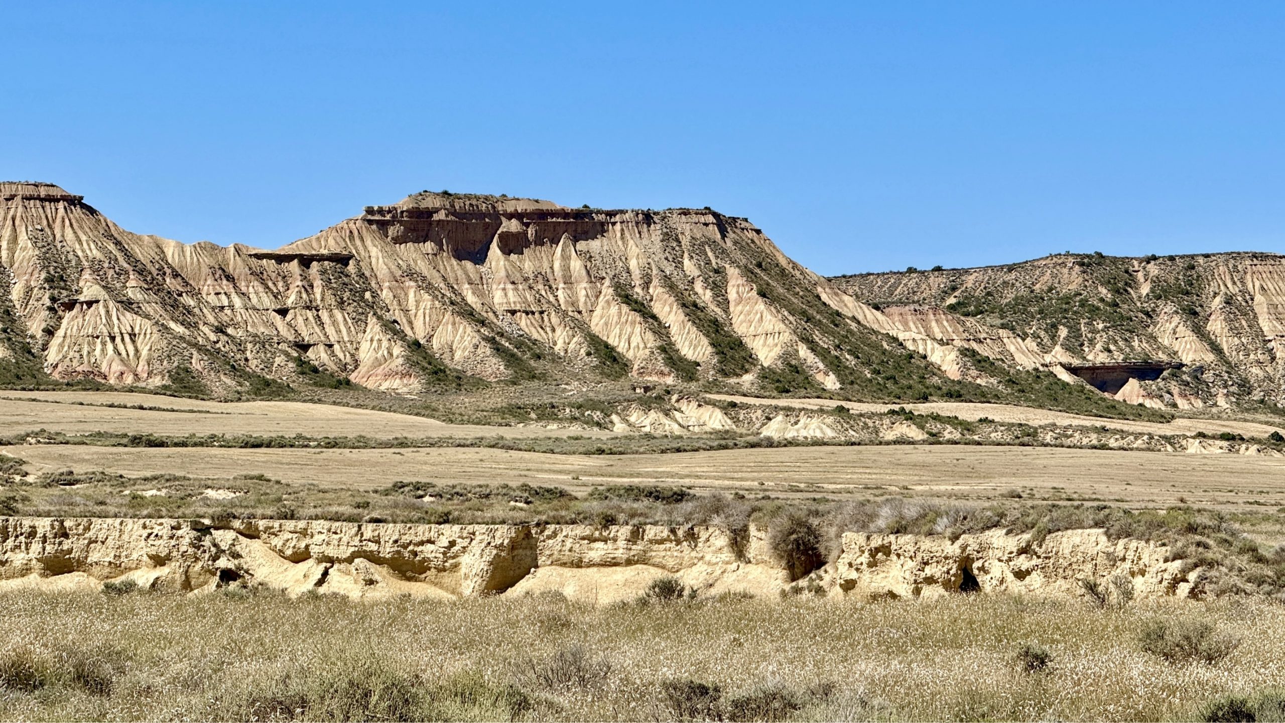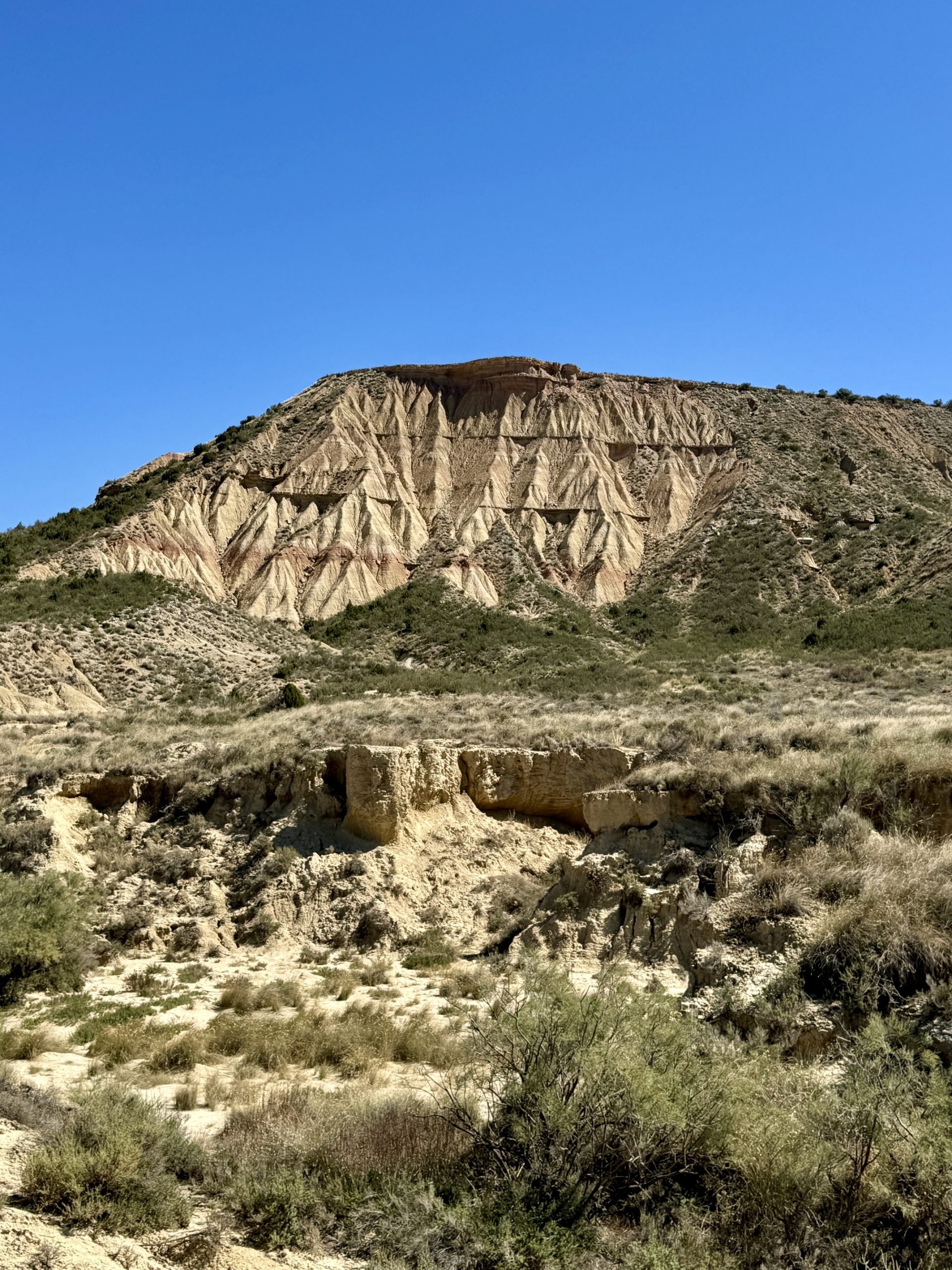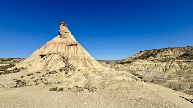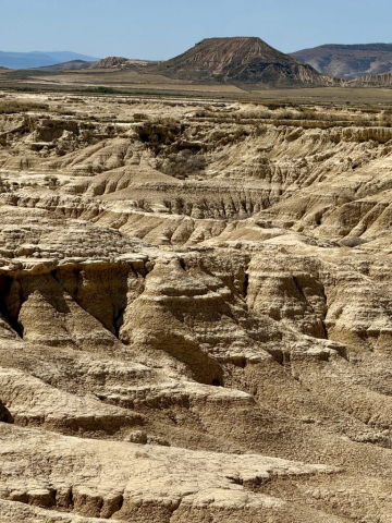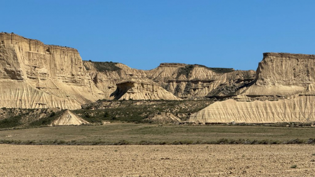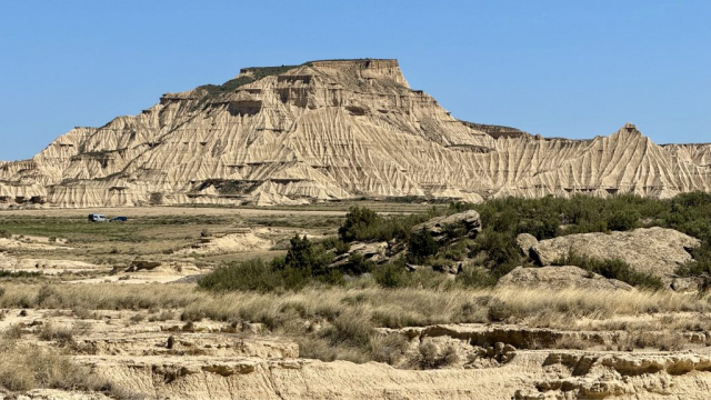 Die Bardenas Reales erstrecken sich auf ca. 42.000 Hektar zwischen den Städten Pamplona und Saragossa und bestehen größtenteils aus Lehm, Überresten eines urzeitlichen Meeres, sowie aus Sandstein- und Kalksteinschichten. Während der Schneeschmelze der Pyrenäen sind hier Sedimentschichten erodiert und die charakteristischen Landschaftsformen entstanden. Das Gebiet kann per Pedes, Fahrrad oder Auto (Camper eingeschlossen) besichtigt werden und das Beste daran: völlig kostenlos. Es gibt mehrere Routen in den Bardenas und alle sind entsprechend ausgeschildert. Die Mitte der Bardenas ist Militärgebiet und für die Öffentlichkeit gesperrt.