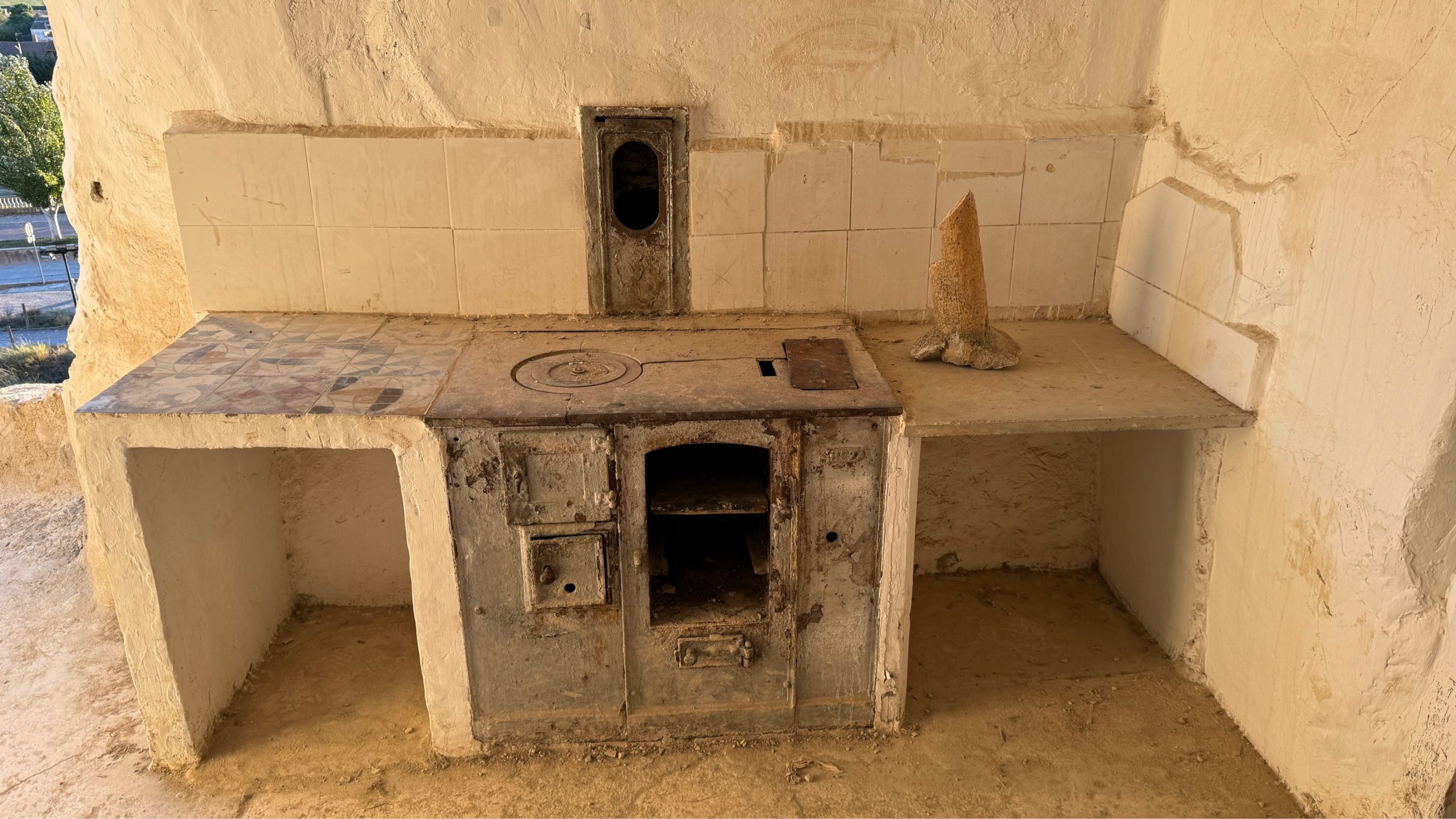 Wir finden zum Glück eine in Carcastillo und gönnen Pablo etwas Wellness nach all den Strapazen. Danach geht es schnurstracks und auf asphaltierten Wegen zurück nach Arguedas, um den Stellplatz unterhalb der Cuevas auszuprobieren. Auch hier stehen wir zwischen viel Weißware, aber mit Ausblick auf die, von der Sonne in sanftes rot gefärbten, Höhlenwohnungen. Bis in die 60er Jahre wurden diese noch bewohnt. Einige sind noch sehr gut erhalten und es macht Spaß sie zu erkunden. In der Regel bestehen die Wohnungen aus 2-3 Zimmern und einer Kochtstelle (Küche). Es gab kein fließend Wasser und kein Strom. Dennoch fühlten sich die Bewohner hier wohl, denn das Dach überm Kopf war erschwinglich. Da der Stein leicht zu bearbeiten war, reichten Hammer und Meißel um den Wohnraum zu erweitern. Allerdings sind ein paar der Höhlen mittlerweile auch eingestürzt, weshalb man sich wirklich nur in markierten Bereichen aufhalten sollte.