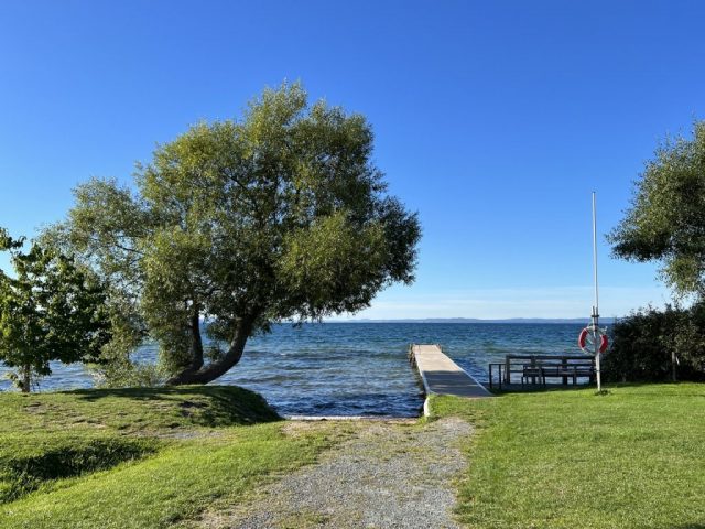 Die frische Luft und das Nichtstun scheinen uns schläfrig gemacht zu haben. Wir wollen gar nicht aufstehen aber um 11:00 Uhr müssen wir die Fähre erwischen und so verabschieden wir uns notgedrungen von unserem Faluenzerplätzchen.