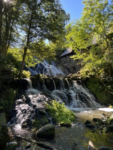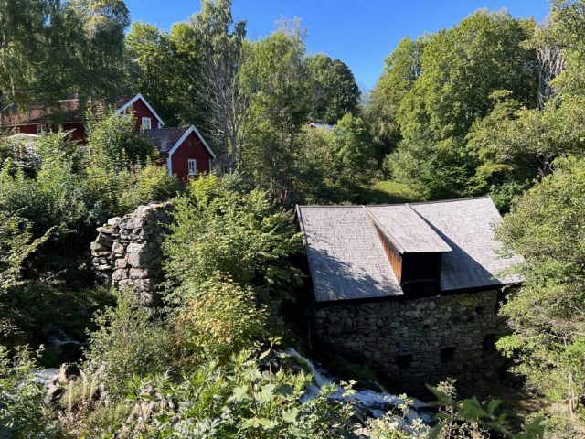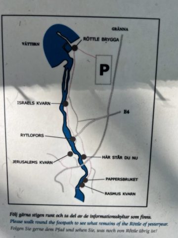 Die Fähre ist heute gefragt und bringt uns zügig nach Gränna, welches wir trotz des verlockenden Zuckerduftes in der Luft, wieder links liegen lassen. Etwas außerhalb des Städtchens liegt nämlich Röttle By, ein Kulturreservat, direkt am rauschenden Fluss gelegen & schon seit dem Mittelalter für seine Getreidemühlen bekannt. Ab 1641 wurde die Wasserkraft des imposanten Wasserfalls industriell genutzt und unter anderem die erste Papierfabrik Smålands, eine Waffen- und Kupferschmiede, eine Schießpulvermühle und eine Sägewerk betrieben- leider sind hiervon auch nur noch Überreste erkennbar. Wir streifen ein wenig über das Gelände, da wir aber heute noch bis zur Ostküste wollen, bleibt uns leider nicht genug Zeit um alles zu erkunden.