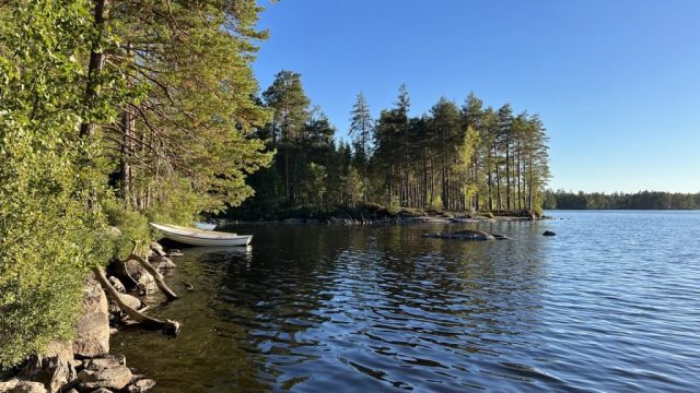 Wir fahren weiter durch den Norra Kvill Nationalpark. Unser Weg führt vorbei an moosbewachsenen Steinbrocken, dichten Kiefernwäldern und tiefblauen Seen, ein perfektes Gebiet für Elchsichtungen, wie wir finden. Aber die Elche scheinen dies wohl anders zu sehen.