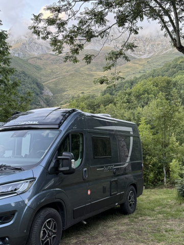 Gegen 16:00 Uhr kommen wir müde, aber glücklich wieder in Caín an und gönnen uns erstmal eine kalte Cola. Was für ein gelungener Tag. Jetzt brauchen wir nur noch einen entsprechenden Stellplatz. Ich habe gestern einen Platz entdeckt, der mich an eines unserer letzten Reiseziele erinnert. Bevor wir dort ankommen, müssen wir allerdings wieder zurück nach Posado de Valdeón. Miri darf wieder Stoßgebete gen Himmel schicken und Pablo muss alle Energie bündeln, um die Steigungen zu überwinden. Wir kommen aber ohne Probleme an.