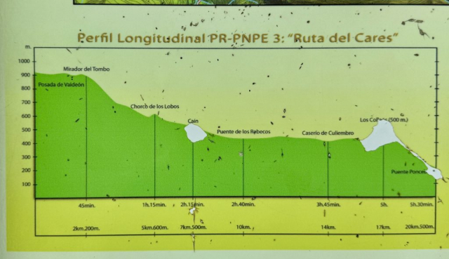 - Wenn man in Caín oder Poncebos ankommt (je nachdem wo man startet) muss man auch wieder zurück laufen. Es gibt zwar Taxis, die zwischen den Orten verkehren, allerdings handelt es sich um eine Distanz von ca. 100 Kilometern & eine Fahrtzeit von mind 2 Stunden! Die Fahrtkosten kann man sich dann hochrechnen
