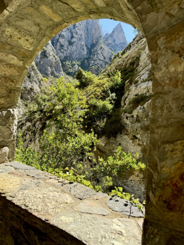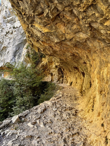 - Trittsicherheit und Schwindelfreiheit sind Grundvoraussetzung: Der Weg verläuft immer am Abgrund entlang und mit Blick auf schroffe Bergformationen und das tiefe Tal, durch das sich der Fluss schlängelt.
