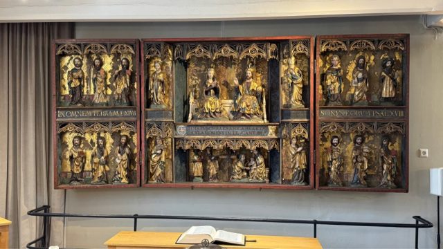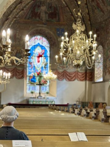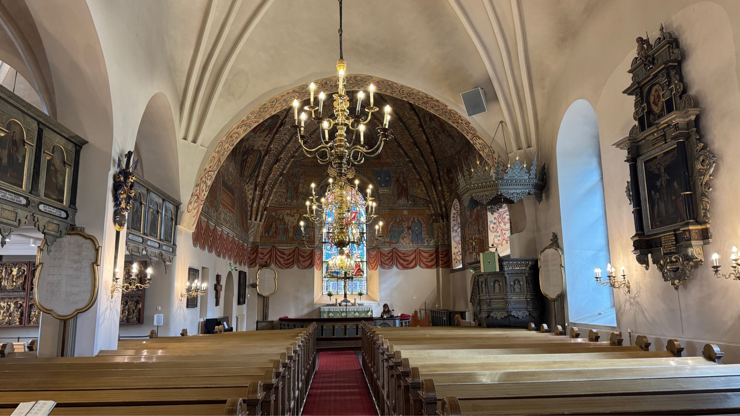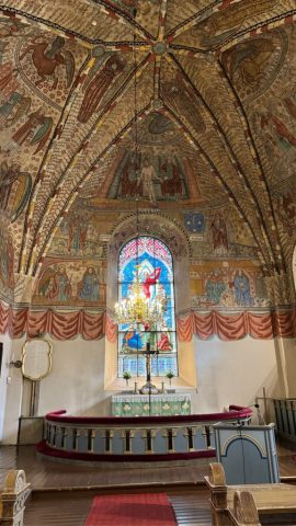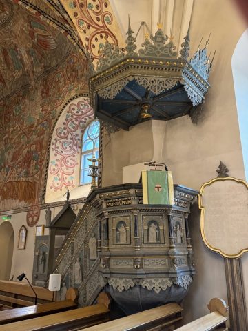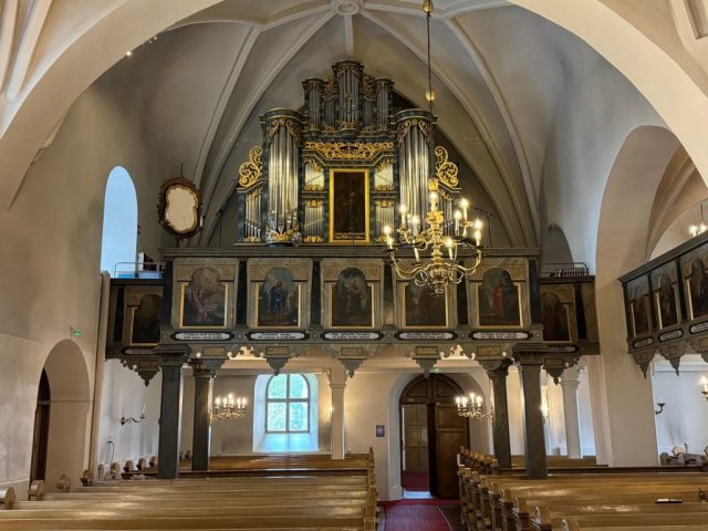 Bevor wir die Altstadt erkunden, besichtigen wir die Heilig-Kreuz-Kirche. Ich setze mich zu einer alten Dame in die Kirchbank und sie erzählt mir im besonderen Dialekt Raumas von den Besonderheiten der Kiche. Nachdem die ältere, Ende des 15. Jahrhunderts errichtete, Dreifaltigkeitskirche beim Stadtbrand von 1640 zerstört wurde (ihre Ruinen sind aber bis heute erhalten), haben Franziskaner die Neue um 1520 erbaut. Der Kirchturm wurde 1816 angebaut und diente Seefahrern als Orientierungspunkt. Wir lassen die Dame in Ruhe weiter beten und ziehen durch die Altstadt.