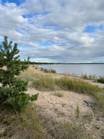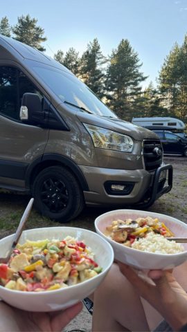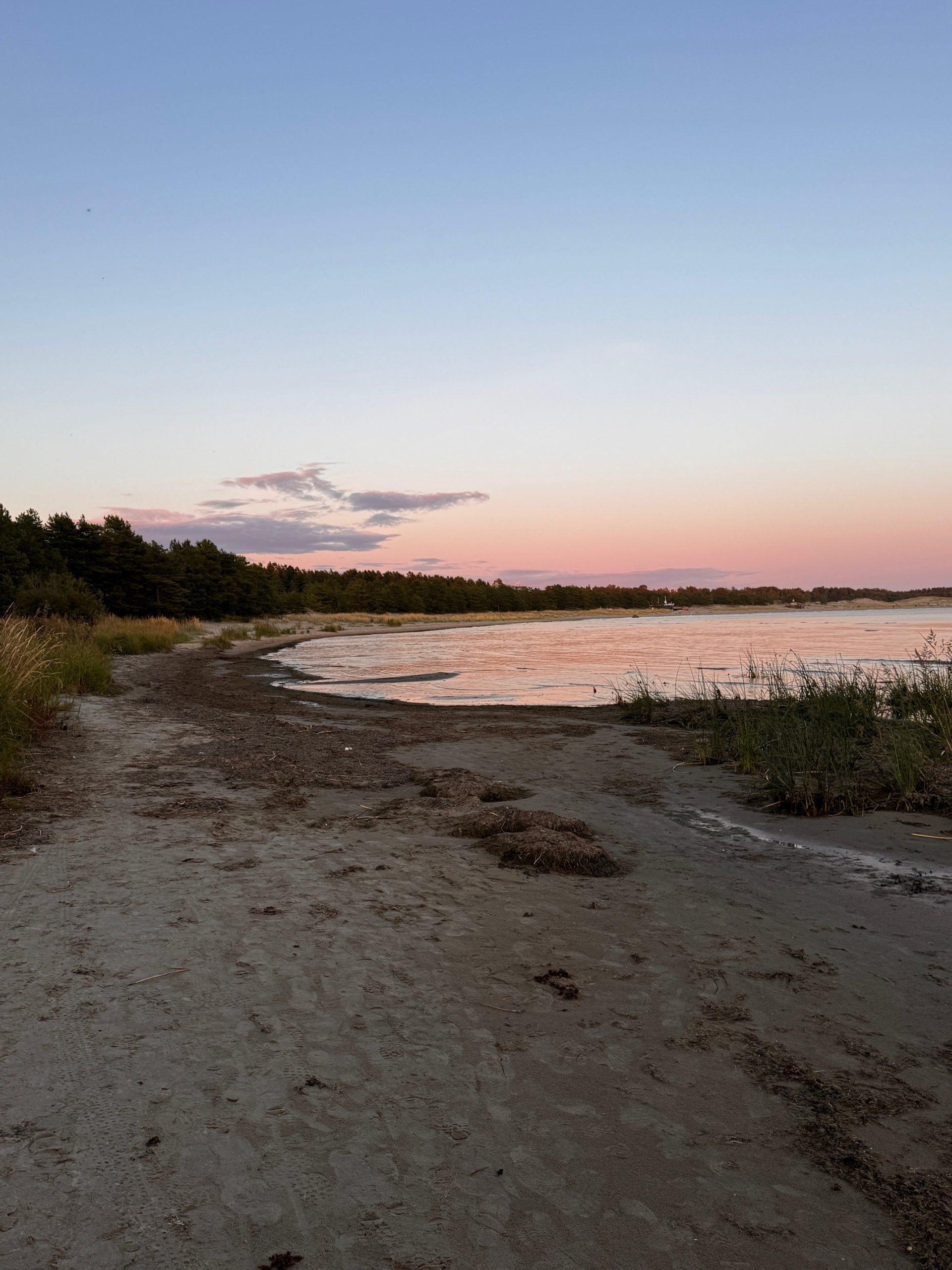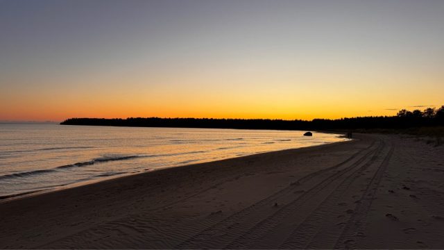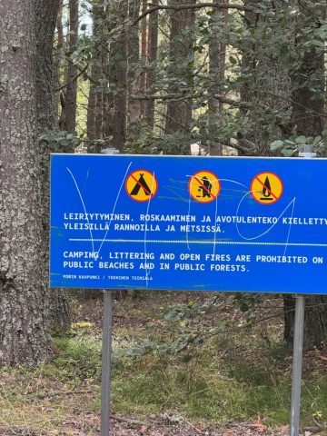 Der Platz bietet ausreichend Stellfläche und liegt zwischen Meer und Golf-Green. Das einzige, was etwas irritiert, ist das „Bären machen Müll“ Schild. Mit Wildtier-Sichtungen hatte ich hier eigentlich nicht gerechnet!? Wir sind ausnahmsweise mal vor der Dämmerung am Stellplatz und wollen noch kurz an den Strand. Vorher halten wir noch ein kurzes Pläuschchen mit unseren Nachbarn aus Mannheim. Sie sind schon seit 2 Wochen in Finnland unterwegs und hatten bisher ausschließlich Regen! Wir hoffen, sie nehmen ihr Wetter morgen mit und wir dürfen unseres behalten!