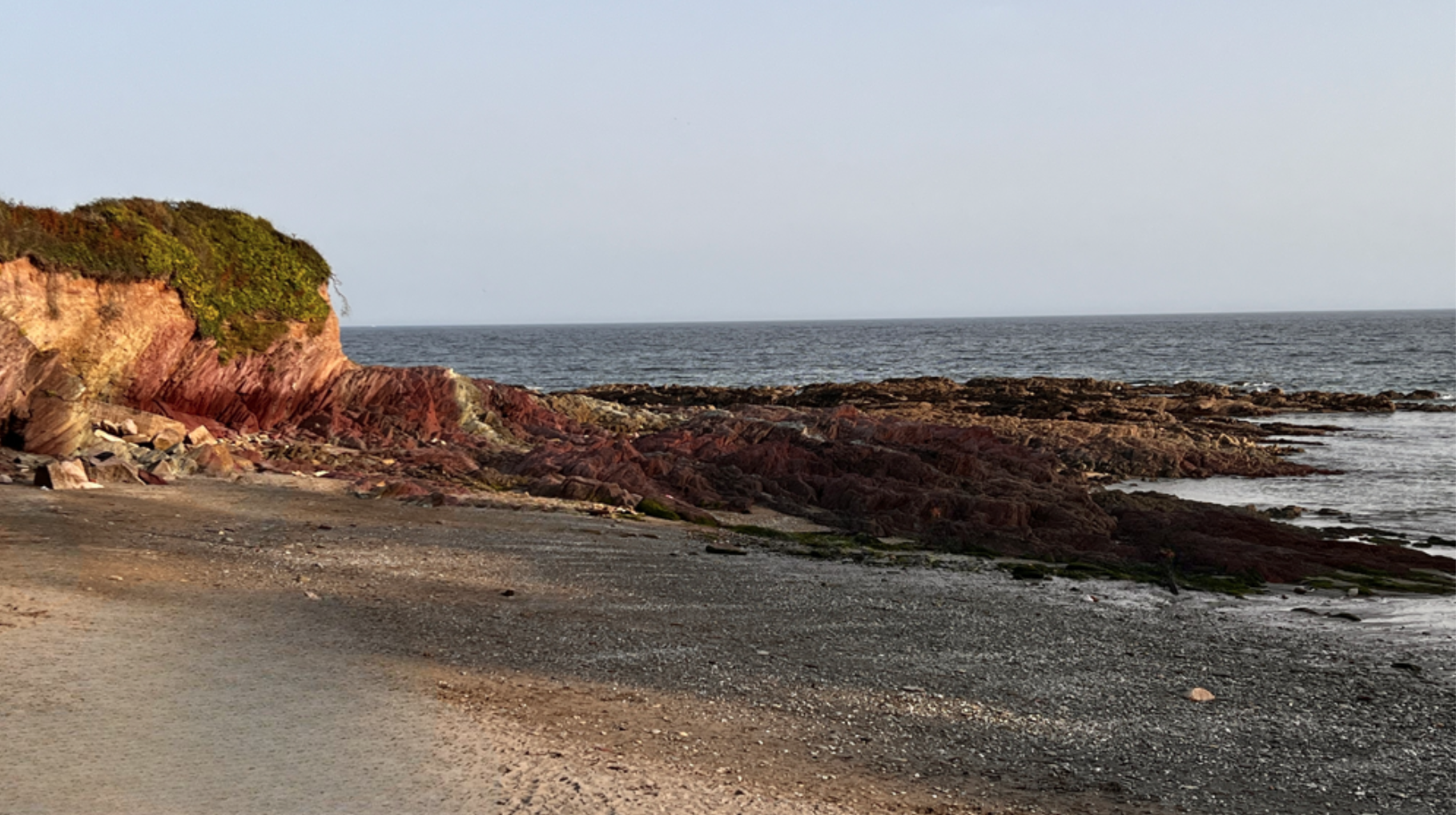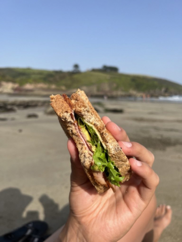 Mit Picknick-Decke, unseren Sandwichs und Badesachen bewaffnet, laufen wir in Richtung (Stinke-) Bucht.