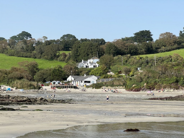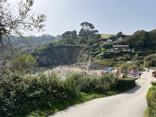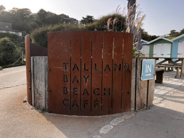 Die Reiseleitung ist noch etwas verschlafen und sucht kurzerhand und ohne genau zu schauen einen Strand in der Nähe von Polperro raus: Talland Bay Beach. Immerhin soll es dort ein gutes Café geben, im Notfall ist also wenigstens das Nachmittagskaffee gesichert.
