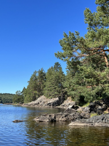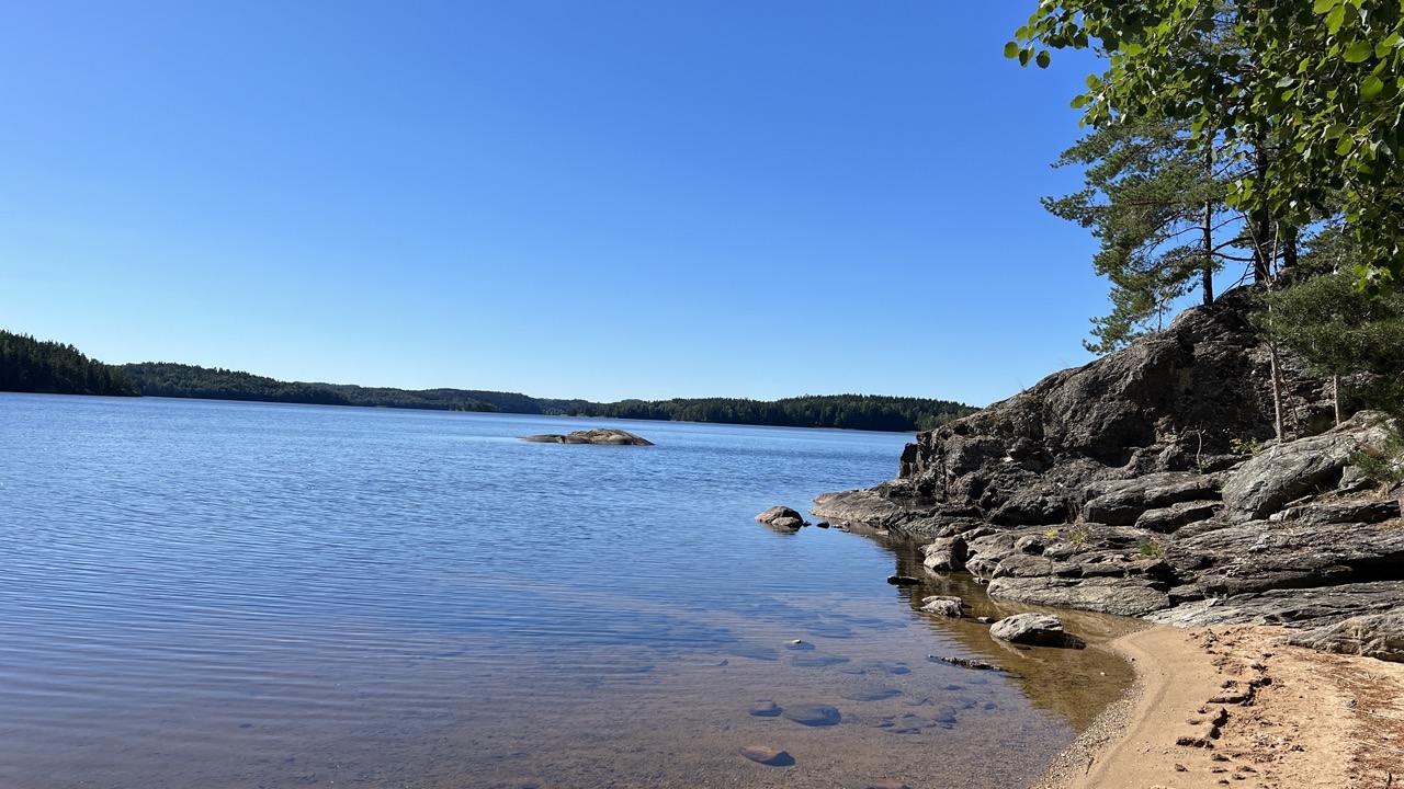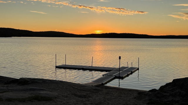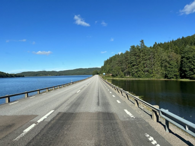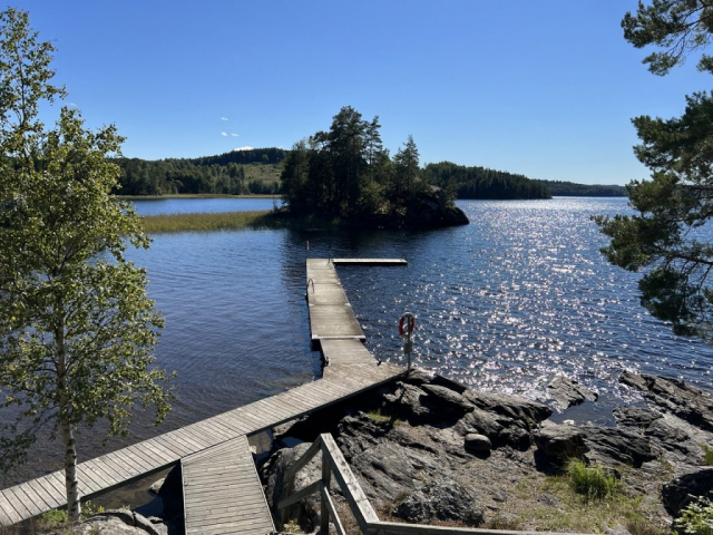 Es geht weiter vorbei an Seen und Wäldern. Wir nähern uns dem Vänernsee und die Seedichte wird größer. Da Zeit für eine kleine Mittagspause ist, suchen wir uns einen der fast 100.000 Seen Schwedens für unser Picknick aus. Die Sonne wärmt uns und der Steg im See verleitet uns sogar dazu ins eiskalte Nass zu springen. Da wir noch ein Stückchen weiter bis Åmål wollen, machen wir uns notgedrungen wieder auf den Weg.