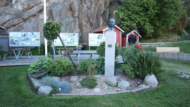 Wir laufen runter in den Hafen. Hier steht eine Gedenkstatue für Ingrid Bergmann, dem Filmstar aus Casablanca. Fjällbacka war ihr Herzensort und ihr letzter Wunsch war es, hier beerdigt zu werden.