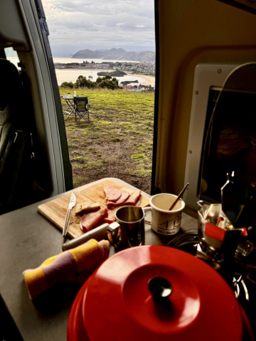 Der Hahn kräht in Dauerschleife, die Kühe muhen und der Wachhund nebenan bellt jeden und alles an, was sich ihm in den Weg stellt. Ich blinzle durchs Rollo und sehe die Dachzelt-Camper nebenan verfroren aus ihrem Bett steigen. Ich würde ihnen am liebsten einen heißen Kaffee kochen, aber sie haben alles dabei. Da sieht man mal wieder, was für ein Luxusleben wir führen, denn Pablo hat eigentlich alles was wir brauchen: ein warmes Bett, im Notfall eine Heizung, eine Dusche und eine kleine Küche um allerlei Leckereien zu zaubern. Und dann bringt er uns auch noch an solche Orte.
