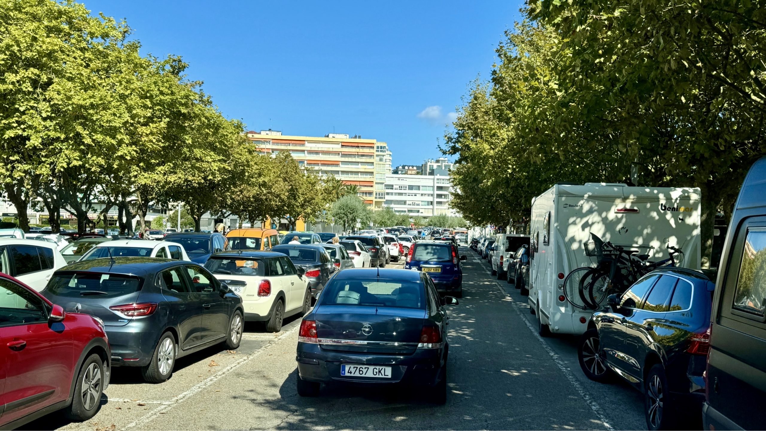 Sie ist wie ausgestorben… Spaß! Soviele Autos in einer Stadt sieht man selten. „Alles muss raus“, scheint das heutige Motto zu sein. Es gibt keinerlei Parkmöglichkeiten, um die Stadt zu Fuß zu erkunden. Wenn die Spanier ihre Autos stapeln könnten, würden sie auch dies noch tun. Es wird in Kreiseln oder in Einfahrten geparkt und der Platz notfalls mit Stoßstangengewalt verteidigt. Der städtische Strand ist von Menschen übersät – ein Bild wie Millionen kleiner Ameisen im schneeweißen Sand, von dem man kaum noch etwas sieht.