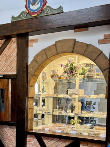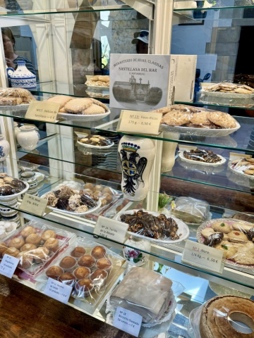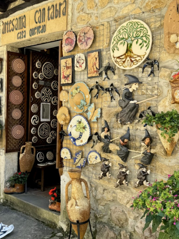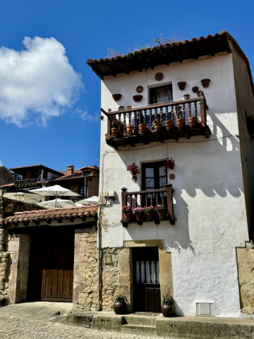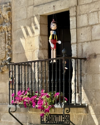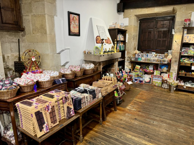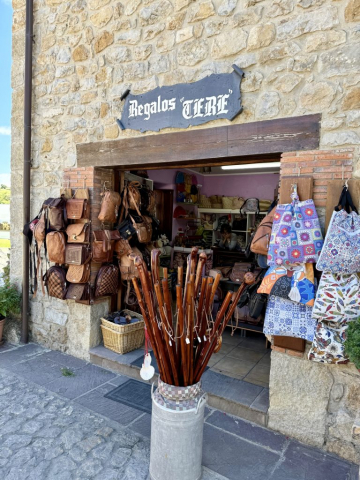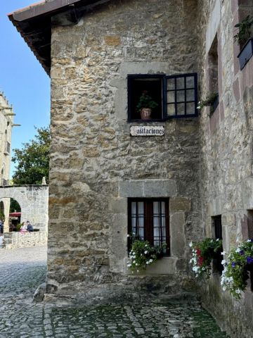 Im Reiseführer war nicht viel darüber zu finden, aber es soll ein schönes, mittelalterliches Städtchen sein. Und genauso ist es: enge, kopfsteinpflaster-gepflasterte Gässchen, schöne, gepflegte Altbauten und mit Blumen geschmückte Paläste sowie süße, kleine Geschäfte säumen unserem Weg. Die wichtigste Sehenswürdigkeit ist das Kloster Colegiata de Santa Juliana. Hier entdecke ich eine witzige Besonderheit: In einem kleinen Raum befindet sich ein Schaufenster mit allerlei Gebäck. Daneben eine Drehtür und eine Klingel. Hat man sich für eine Leckerei entschieden, klingelt man und eine Ordensschwester erscheint an der Drehtür, fragt was man möchte und liefert prompt. Ein altmodischer, aber persönlicher Gebäckautomat also.