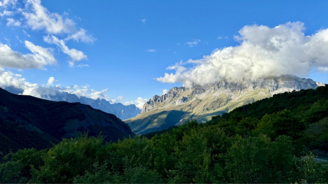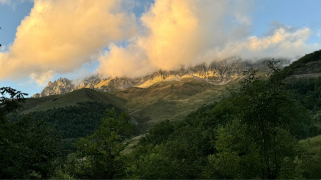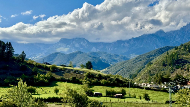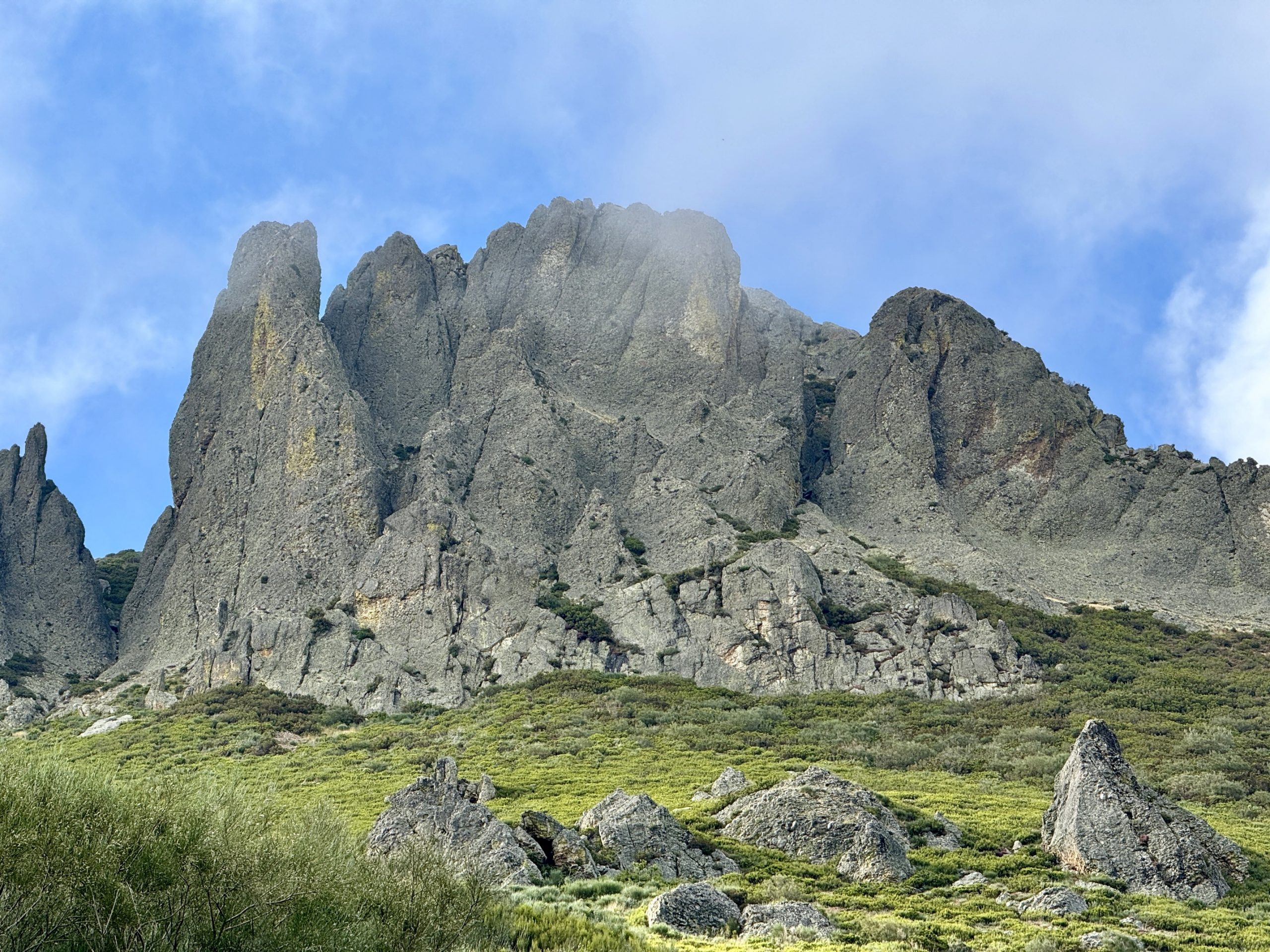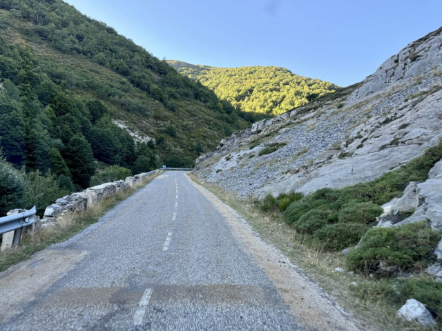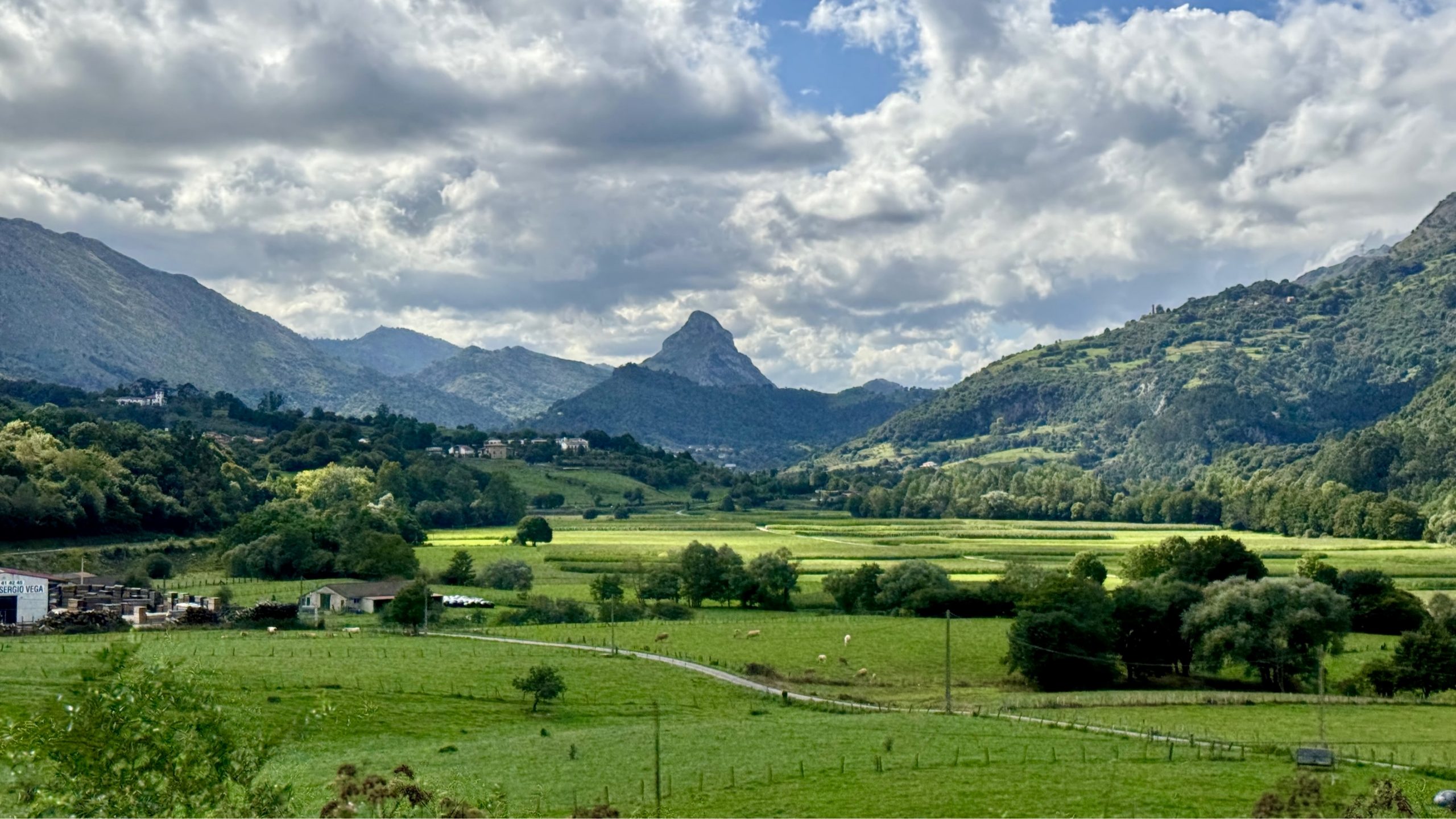 Danach geht es zurück zum Auto. Wir ziehen heute noch weiter in die Picos de Europa. Zuerst Berge, dann Meer: es ist für jeden was geboten. Wir wollen bis Posada de Valdeón, denn für morgen habe ich eine besondere Unternehmung auf meiner Liste stehen. Dafür durchqueren wir (gefühlt) zuerst die Alpen, dann das Allgäu und schlussendlich die Dolomiten. Die Felsformationen und Aussichten sind so beeindruckend, dass wir uns während der Fahrt die Nase an der Frontscheibe platt drücken. Zwischendurch kommen wir durch kleine Bergdörfer, werden von einer Herde Schafe ausgebremst und es ist immer wieder ein „Ooooh“ oder „Aah, wie schön“ zu hören. Zum Glück habe ich vor Ort schon die Stellplätze sondiert und den Gemeinde-Platz für die Nacht ausgewählt. Er kostet zwar 15€ pro Nacht, allerdings sind Strom, Wasser und Abwasser inklusive & Duschen und Waschmaschinen gibt es auch. Das Allerbeste dran ist allerdings die Aussicht: die hohen, zackigen und sonnenbestrahlten Gipfel der Picos de Europa.