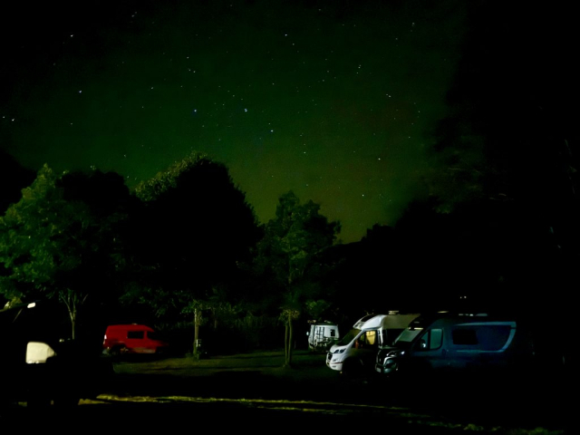 Es wäre schön, wenn alles so glatt laufen würde, wie man es sich vorstellt. Aber die Zufahrt zum Platz erreichen wir nur durch Umwege, denn sie wird durch die Bühne des örtlichen Volksfestes versperrt. Nachdem wir Pablo also durch die engen Gassen jongliert haben, stehen wir vor der Schranke und daneben der Check-in-Automat. Der scheint jedoch etwas gegen uns zu haben, denn er spuckt einfach keine Schlüsselkarte aus. Zwischendurch bietet uns eine nette Dame ihre Karte an, die noch bis zum nächsten Tag gültig ist. Allerdings haben wir Bedenken, denn die Karten sind mit dem Kennzeichen verknüpft. Wir sind dummerweise einfach zu ehrlich, denn dieser Stellplatz will uns letztendlich keinen Zutritt gewähren. Vielleicht haben wir aber auch einfach nur Glück, denn am nächsten (leider auch etwas teureren Platz) treffen wir die Dame wieder und sie erzählt uns, dass sie wegen dem Fest die Flucht ergriffen haben: Die Dauerbeschallung mit lauter Diskomusik in der Nacht zuvor ging nämlich bis 6.00 Uhr morgens und an Schlafen war nicht zu denken.