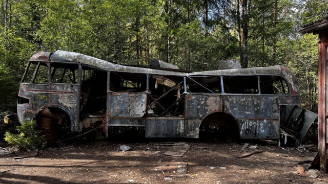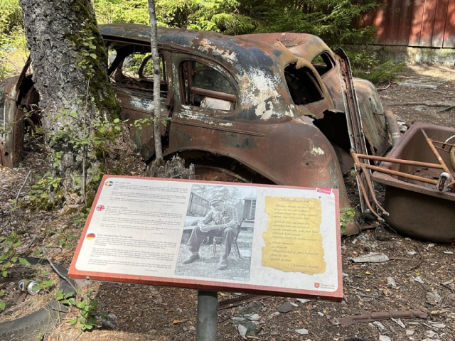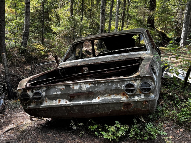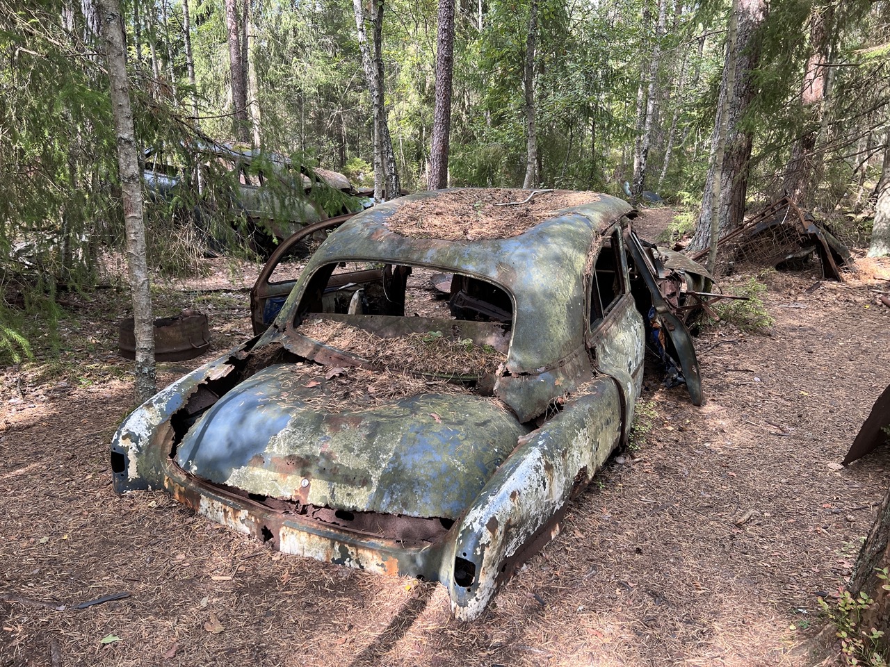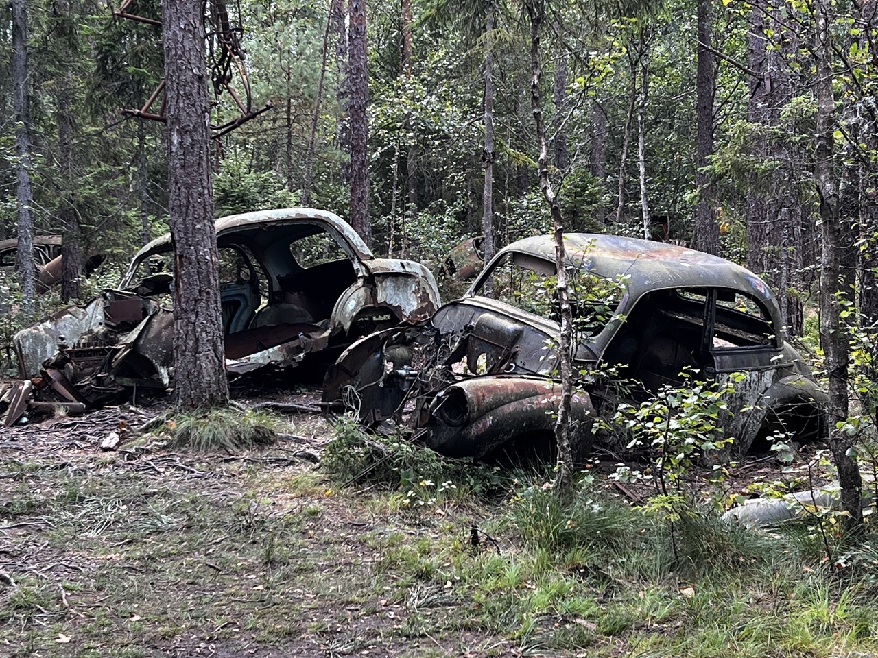 Wir laufen den Weg in den Wald, gesäumt von alten Autoreifen und treffen bald auf die ersten Autowracks, die zum größten Teil schon im Waldboden versunken sind. Beim Anblick dieser alten Karossen (z.B alte Saabs, Volvos, VWs) blutet einem ein bisschen das Herz. Was diese Autos wohl alles erlebt haben? Ist dies der passende Ort sein Dasein zu fristen? Wir finden „ja“, denn irgendwie hat dieser Ort auch etwas Mystisches.