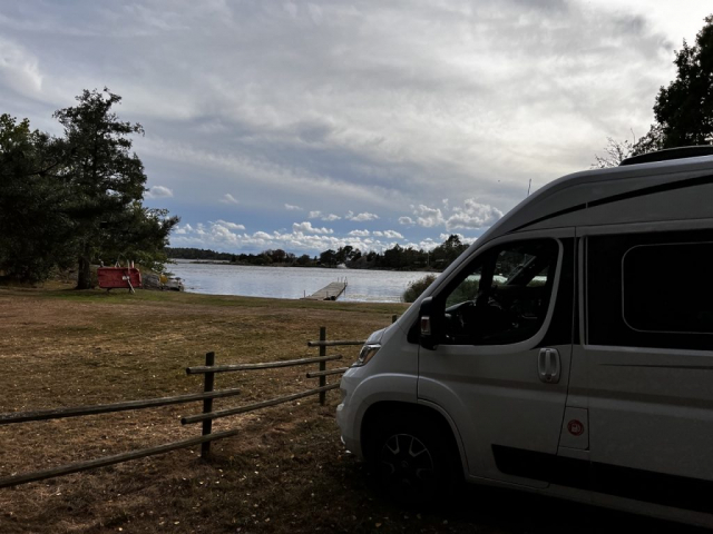 Unser Stellplatz ist recht unspektakulär und da heute einer unserer letzten Tage in Schweden ist, schlafen wir erstmal aus. Nach dem Frühstück ist Reine machen angesagt, denn die Birkenpollen der umliegenden Bäume landen irgendwie ständig in Pössi.
