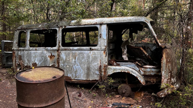 Für viele ist er vielleicht eher eine Umweltsünde aber für uns ist es ein Stück Geschichte, wir sind fasziniert und fotografieren soviel Schrott, wie in unserem ganzen Leben noch nicht. Man könnte sich noch stundenlang in den Details verlieren, überall gibt es etwas zu entdecken: Hier ein 6-Zylinder Motor, da ein alter Bus oder die Überbleibsel eines alten LKW.