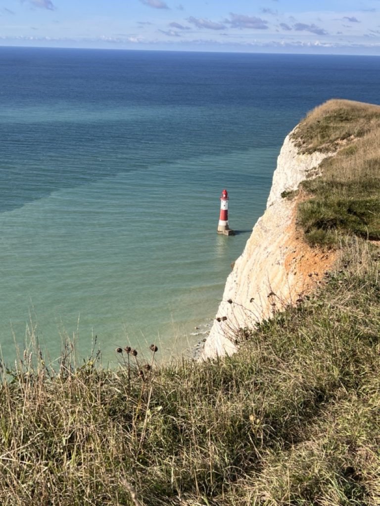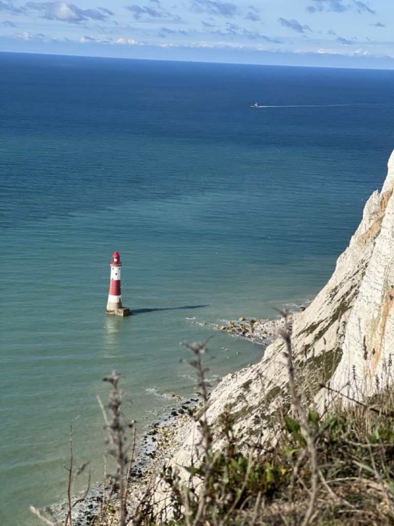 Wir sind früh wach, nicht ausgeschlafen, aber wach! Und Miri hat auch schon ein neues Ziel vor Augen! Damit nicht allzu viel los ist, starten wir um 7:30 Uhr Richtung Beachy Head! Ein kleiner, rot weißer Leuchtturm im türkisfarbenen Atlantik, umgeben von weißen Klippen und grünen Wiesen! Absolute England-Idylle.
