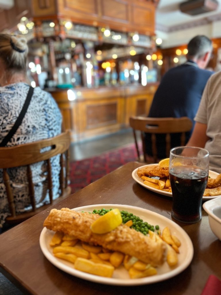 Nach dem vielen Laufen verspüren wir ein Hüngerchen, weshalb wir erstmal einen urigen Pub suchen und dort Fisch‘n Chips essen, bevor wir zum berühmten Brighton Pier gehen. Auch das gehört für uns zu England.