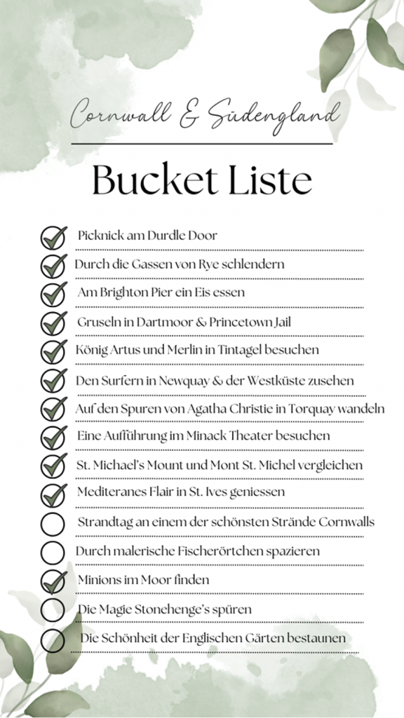 Alternativ machen wir es uns in dem kleinen Garten gemütlich und suchen uns ein schattiges Plätzchen. Jetzt bräuchten wir nur noch einen Pool & alles wäre perfekt. Zwischen Frühstück, Scones, Eindösen und Abendessen kramen wir unsere Bucket-Liste (wie die altgediente To-Do-Liste neuerdings heißt) für diesen Urlaub heraus und checken die offenen Punkte. Wir können schon einige Haken setzen, sind aber froh dass uns noch eine knappe Woche Urlaub bleibt. Denn so können wir auch noch ein paar Dinge von der Bucket-Liste auf die „Was-Soll’s-Liste“ setzen und einfach entspannen!