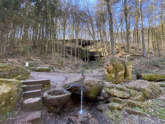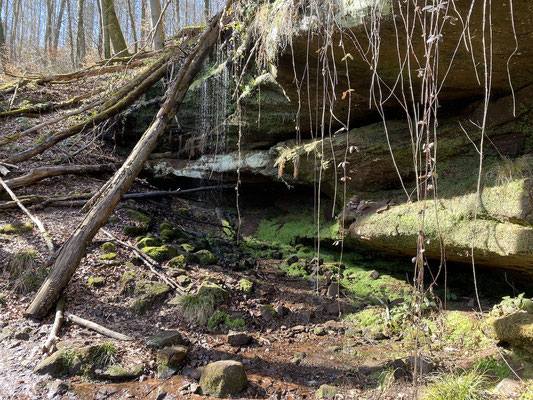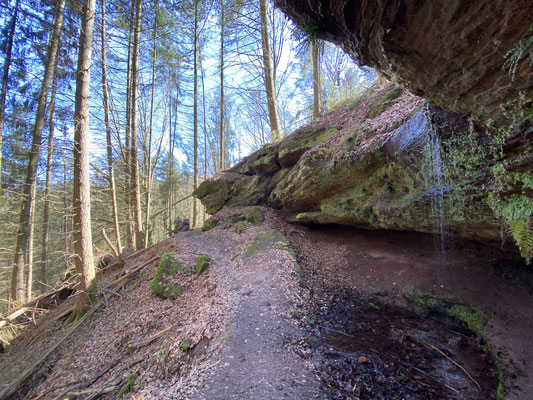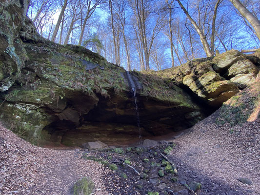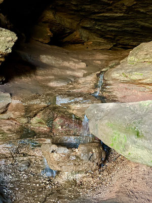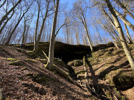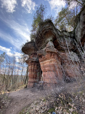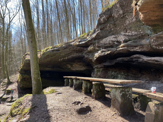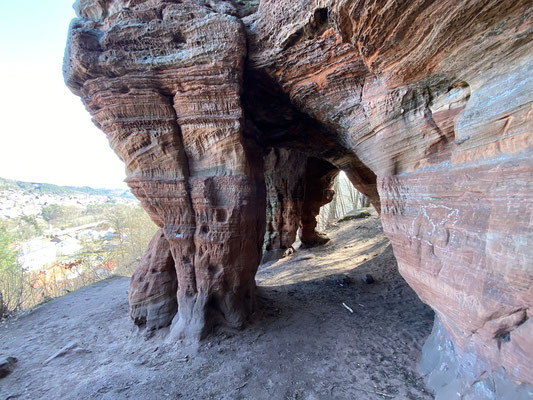 Da es dann doch kühl wird, machen wir uns auf den Weg zur Bärenhöhle, der größten natürlichen Felsenhöhle der Pfalz.