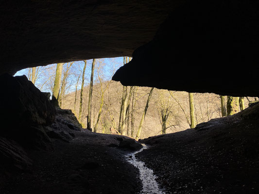 Schließlich erreichen wir die obere Bärenhöhle, hier tritt die Bärenfelsquelle aus. Wir besichtigen die Höhle und fragen uns, ob die Höhle wirklich mal Bären beherbergt hat- was meint ihr?