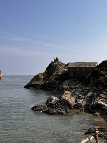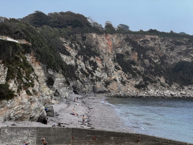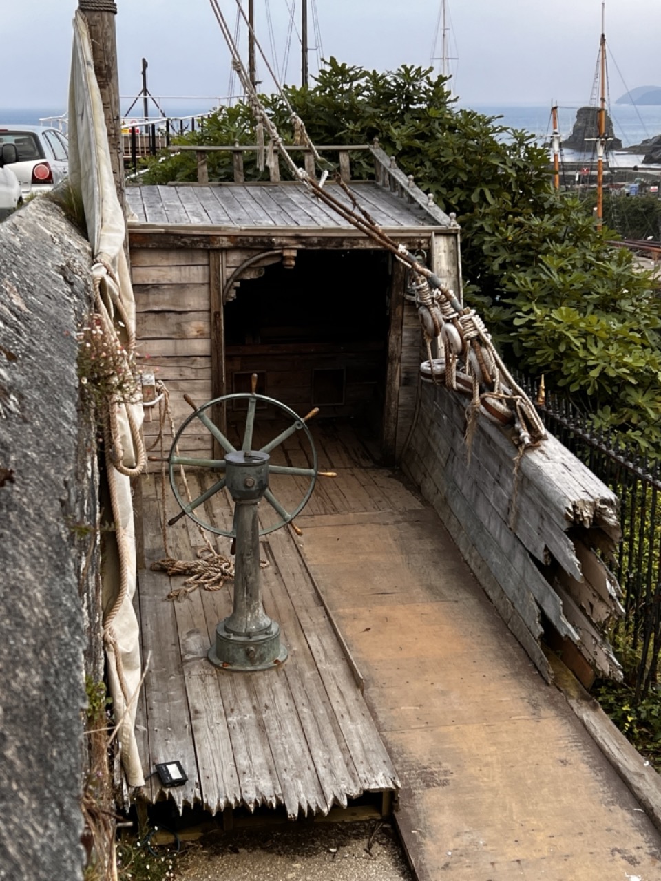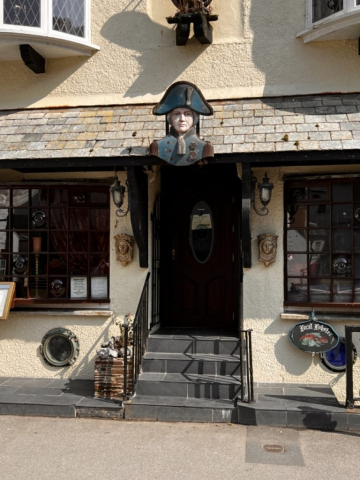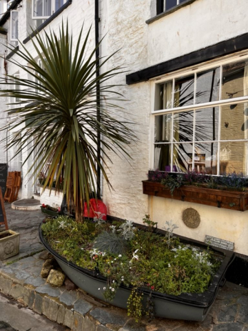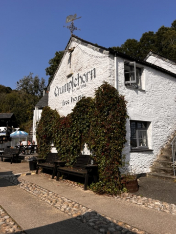 Wir stehen oberhalb der Höhle und von Willys Geist ist nichts zu hören. Also laufen wir zurück zum Hafen, in dem sich eine Vielzahl von Pubs befinden. Wir haben zwar Durst, aber finden für uns nicht das passende und machen uns daher auf den Weg zurück zum Parkplatz. Im Crumplehouse Inn gönnen wir uns eine Abkühlung im Schatten und planen den Weg zu unserem nächsten Ziel: Fowey.
