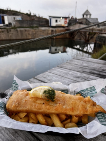 Wir schlendern durch den kleinen und heute sehr lebendigen Hafen, in dem gerade Live-Musik gespielt, getanzt und gefeiert wird. Die umliegenden Lokale sind gut besucht. Wir lassen uns für eine gemeinsame Portion Fisch’n Chips neben den alten Segelschiffen nieder und beobachten das Treiben und die schöne Atmosphäre um uns herum. Langsam wird uns kalt und es heißt Abschied nehmen. Morgen wollen wir unsere Tour fortsetzen und die restlichen Fischer-Schmuggler-Nester erkunden.