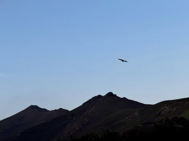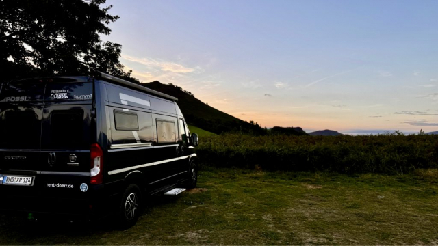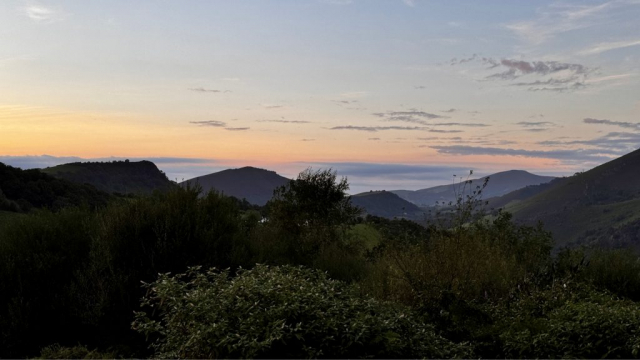 Bevor die Sonne untergeht, verlassen wir das beschauliche Städtchen und fahren in die Berge zum heutigen Stellplatz. Der Weg dorthin ist kaum breiter als Pablo und geht steil bergauf. Wir können nur hoffen, dass uns keiner entgegenkommt, denn Ausweichmöglichkeiten gibt es keine. Am Scheitelpunkt angekommen findet sich nicht nur eine herrliche Aussicht auf die umliegenden Pyrenäen, sondern auch ein passendes Plätzchen für die Nacht.